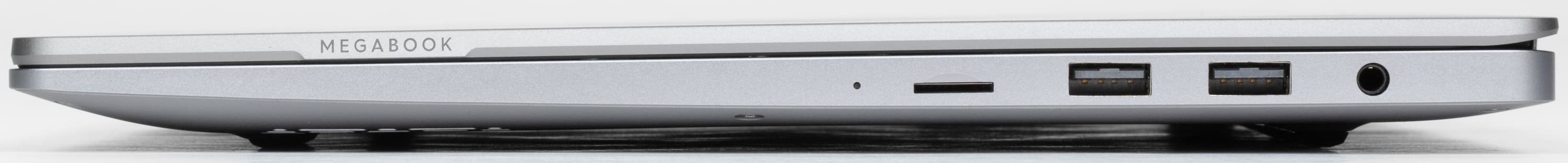 Набор интерфейсных портов обычный для моделей Tecno Megabook: довольно богатый по меркам подобных ноутбуков, а в отношении беспроводных интерфейсов Wi-Fi/Bluetooth еще и вполне современный по номенклатуре. Отсутствие разъема и адаптера для проводной сети вполне простительно для компактного аппарата, зато многим владельцам будет полезен картовод microSD, который встречается не всегда.