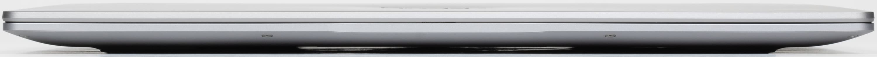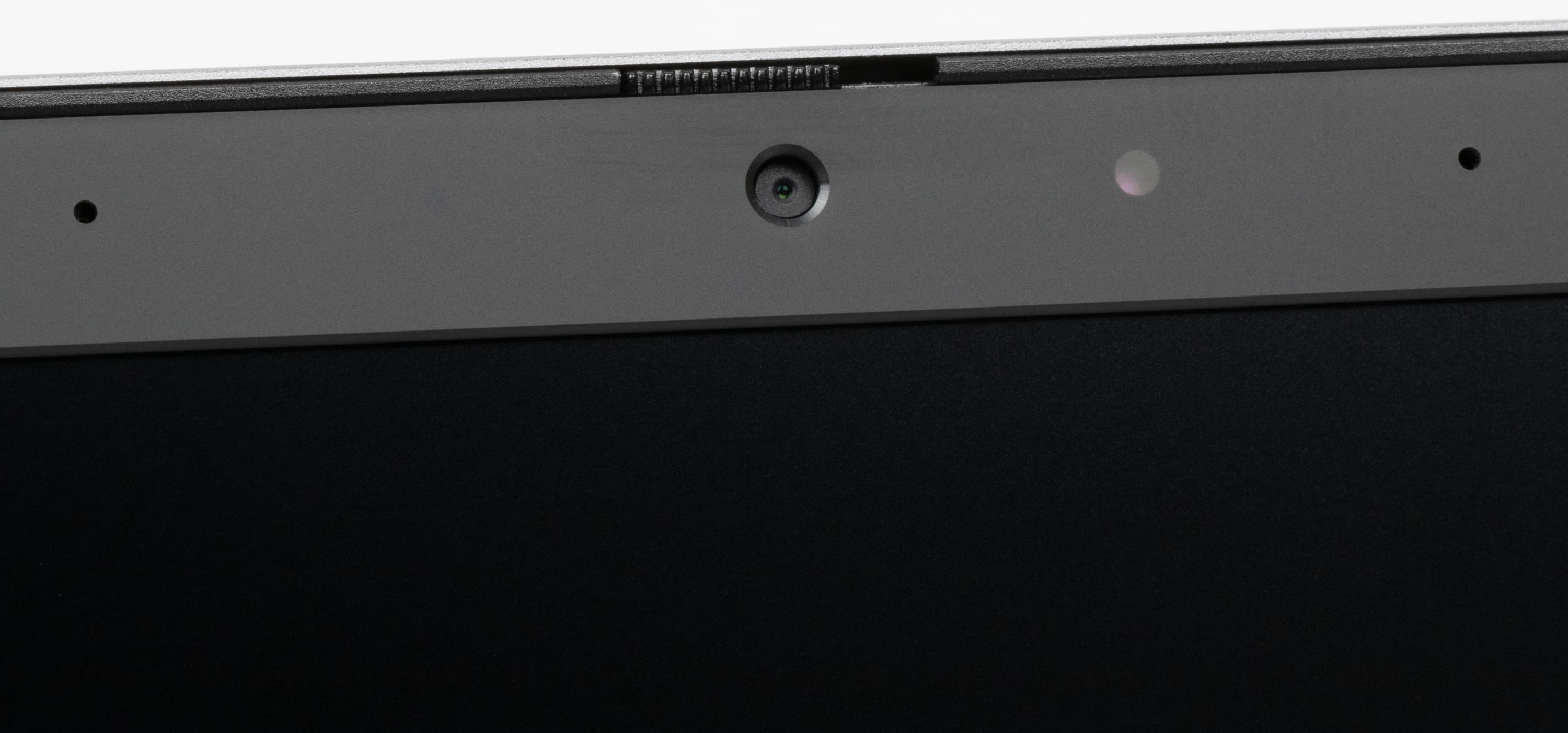 Пластиковая рамка вокруг экрана имеет ширину по бокам 6,9 мм, вверху 12 мм (там расположена веб-камера с индикатором, микрофоны и датчик освещенности) — эти замеры включают и кромку наружной металлической панели; внизу 18,3 мм до изгиба края крышки.