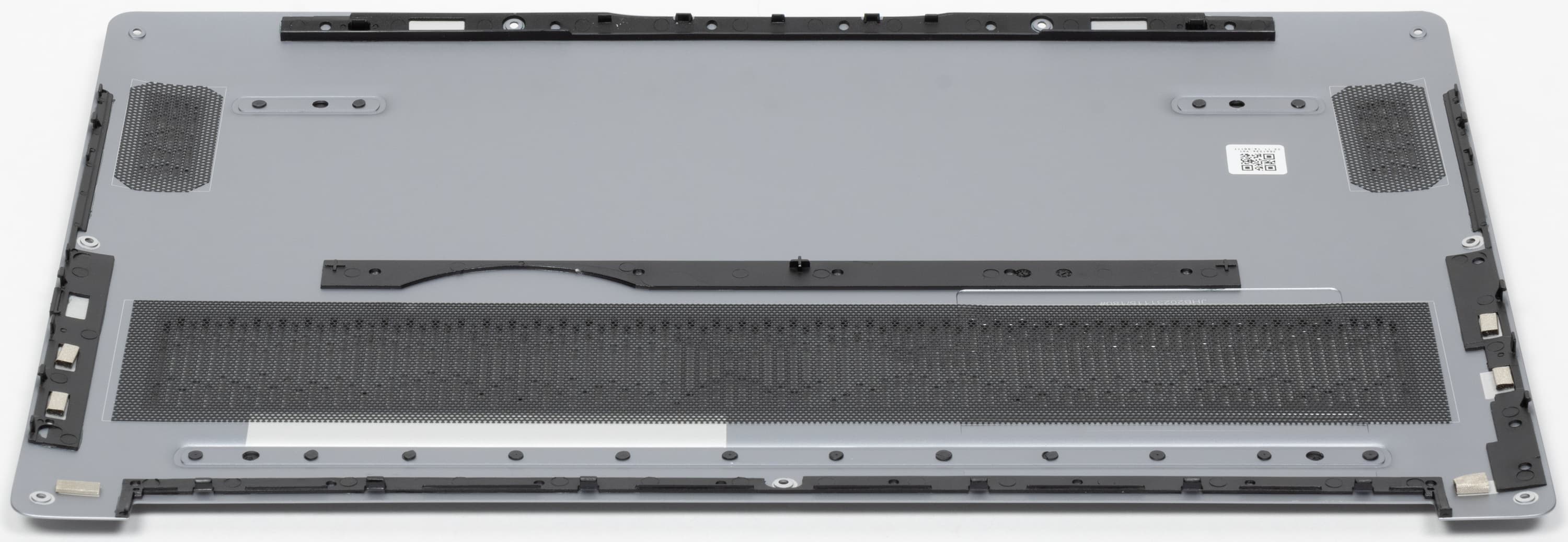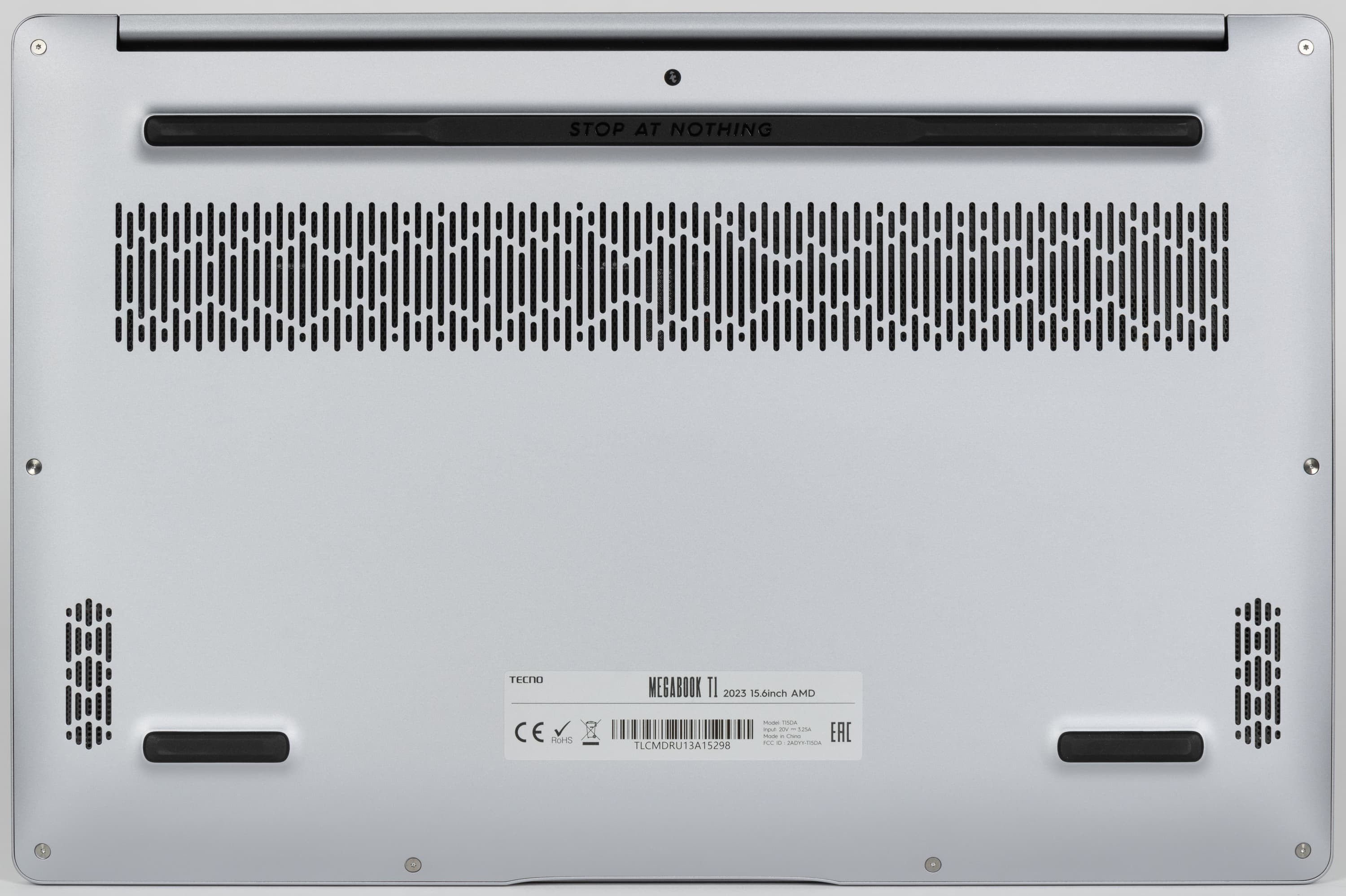 На днище, кроме ножек (спереди две небольшие, сзади одна почти по всей ширине), ближе к задней кромке имеется вентиляционная решетка, через которую происходит забор воздуха для охлаждения компонентов, поэтому ставить ноутбук на мягкую поверхность не следует.