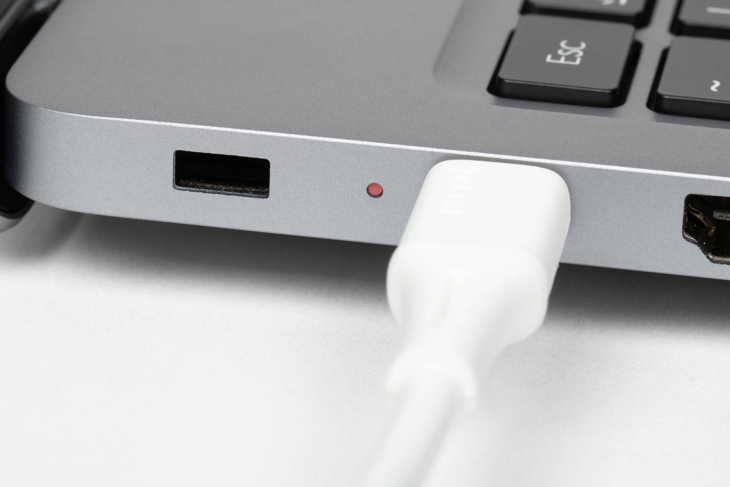 На левом боку имеются отверстие кенсингтонского замка, двухцветный светодиодный индикатор (белый+оранжевый), разъем USB Type-C для подключения адаптера питания (и только для этого — передача данных не поддерживается, это отмечено в официальных описаниях и проверено нами), полноразмерный порт HDMI, порты USB 3.1 Type-A и еще один USB Type-C, на этот раз полнофункциональный.