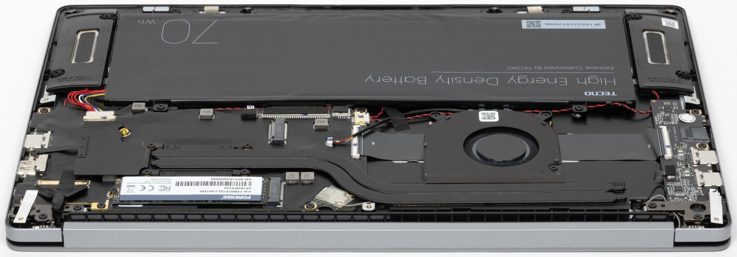 Система охлаждения содержит всего один вентилятор, однако вполне справляется со своей задачей: перегрева и тротлинга нет даже при максимальной нагрузке на CPU и GPU, нагрев поверхностей корпуса в большинстве реальных сценариев эксплуатации либо низкий, либо умеренный, а работает ноутбук при этом очень тихо. И достигнуто это вовсе не ценой серьезных ограничений возможностей процессора.