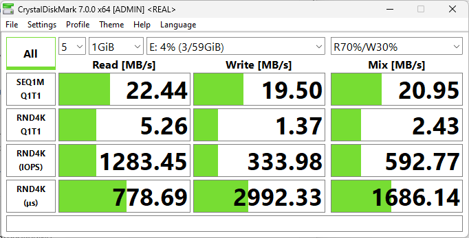 В тестах CrystalDiskMark он показал неплохую производительность.