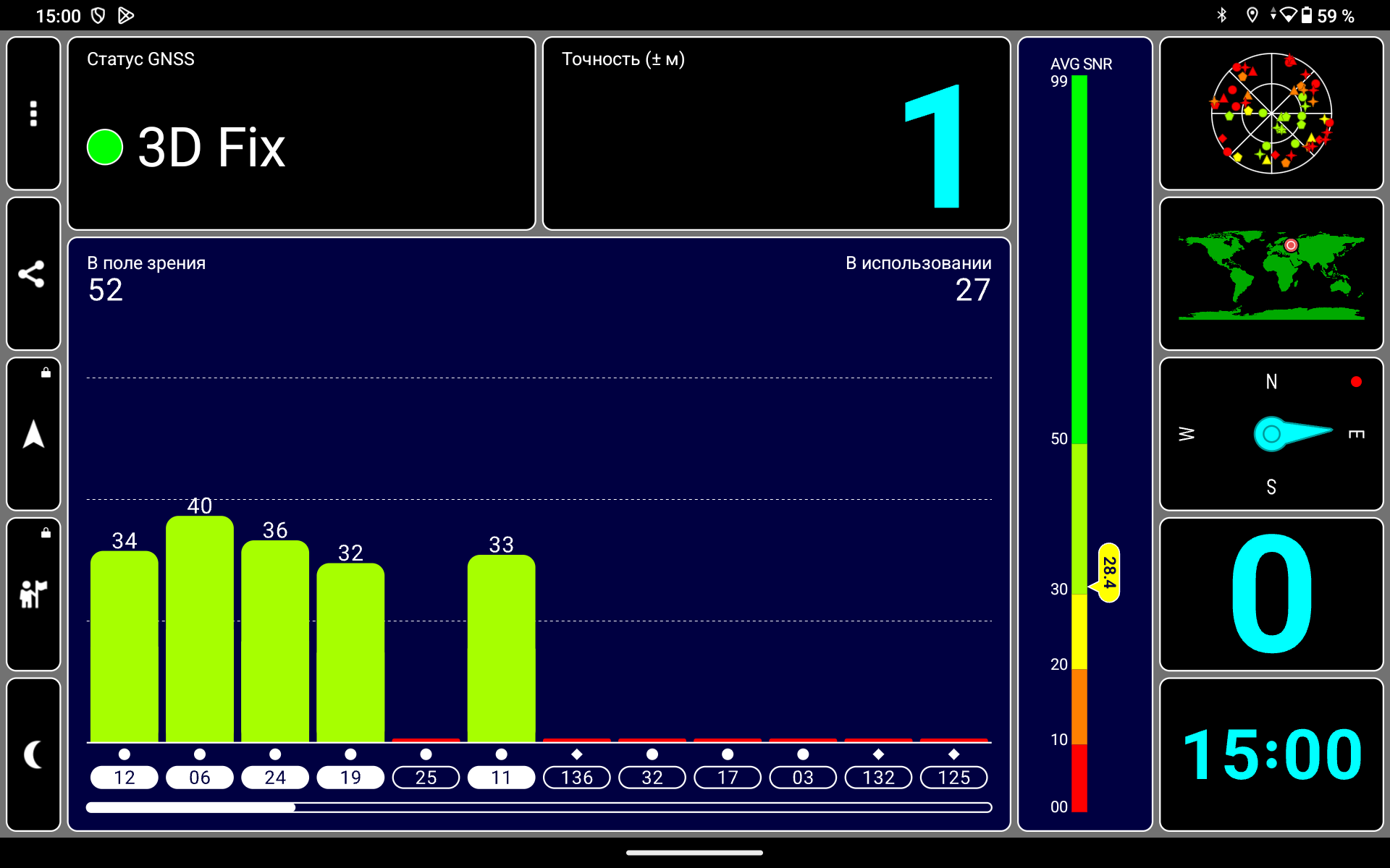 Что касается возможностей связи, то планшет поддерживает 4G и Wi-Fi 5 (но не поддерживает Wi-Fi 6, как, впрочем, и многие другие устройства того же сегмента). Но главное — здесь есть поддержка спутниковой навигации, и холодный старт осуществляется очень быстро: примерно за 20 секунд планшет нашел достаточное количество спутников, чтобы показать в GPS Test точность позиционирования 1 метр.