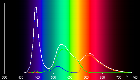Спектры показывают, что светофильтры матрицы в умеренной степени подмешивают компоненты друг к другу: