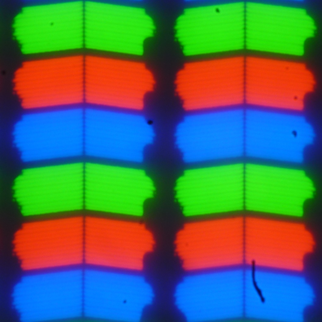 В данном планшете используется матрица типа IPS. Микрофотографии демонстрируют типичную для IPS структуру субпикселей: