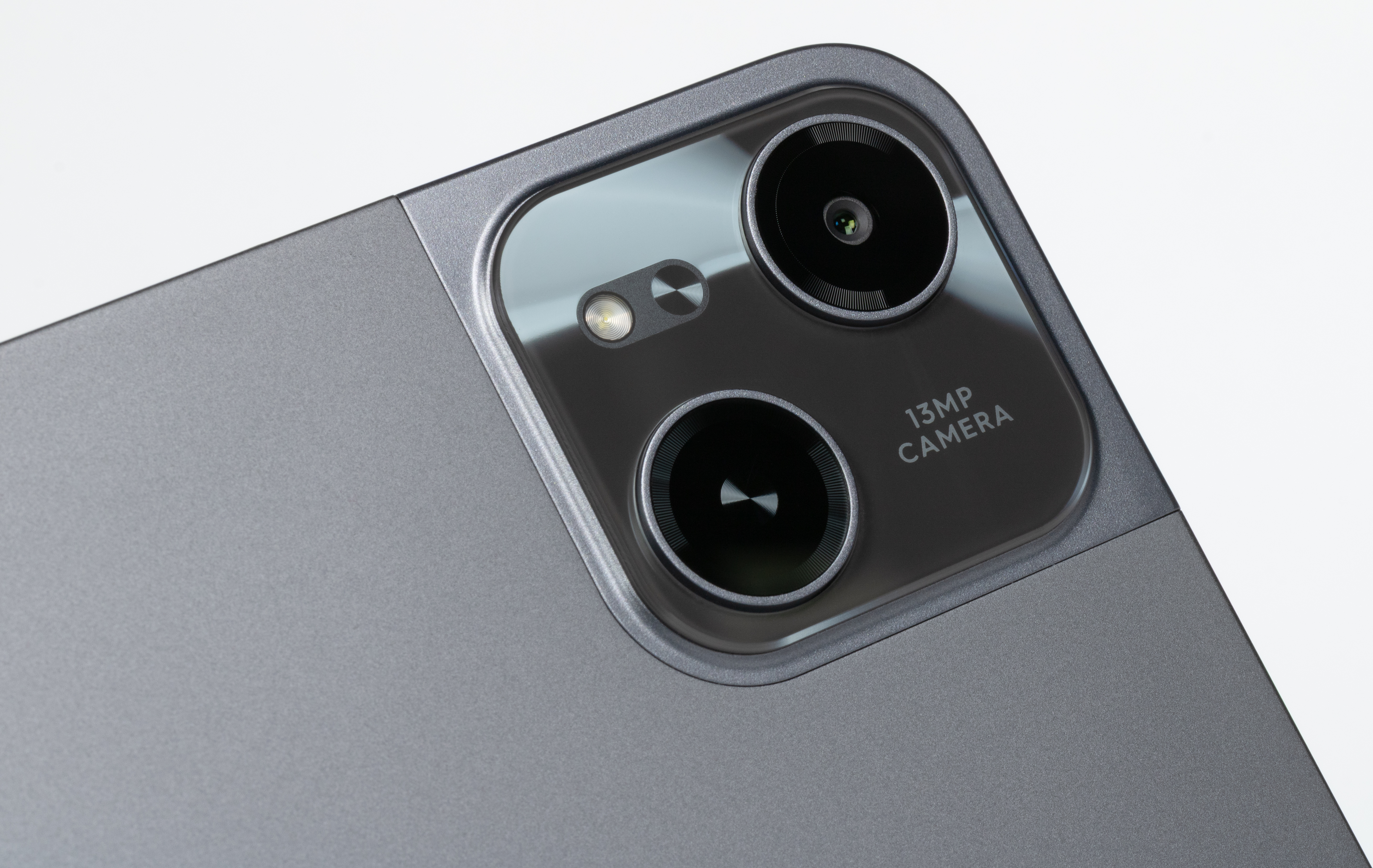 Единственная тыльная камера планшета имеет разрешение 13 Мп — стандартно для современного недорогого планшета. Рядом с модулем расположена вспышка. Про решение с муляжом второй камеры мы высказались в разделе о дизайне, а здесь лишь обратим внимание, что при съемке есть режим 2×, но это не оптический, а цифровой зум.