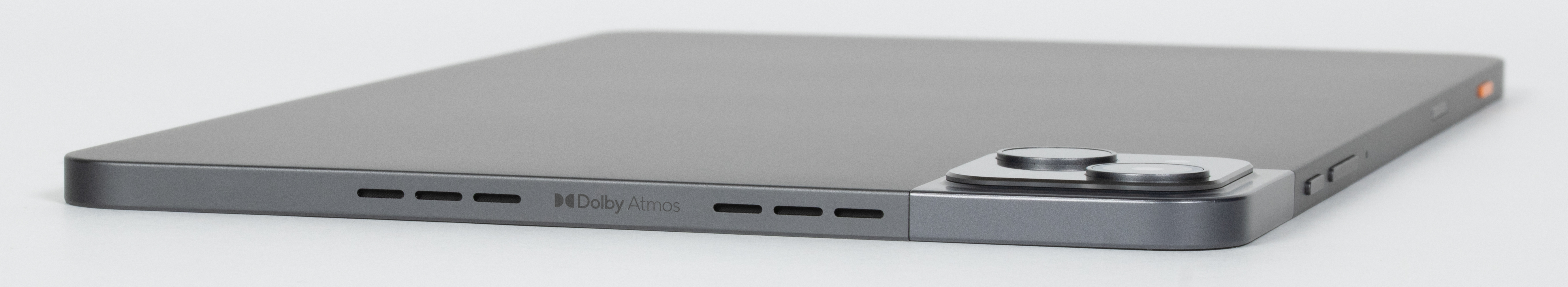 К плюсам дизайна отнесем стереозвук: динамики расположены на левой и правой гранях, рядом с ними (на левой грани) красуется надпись Dolby Atmos, и хотя форм-фактор устройства накладывает неизбежные ограничения, на планшете вполне можно смотреть сериалы и фильмы разговорного плана.