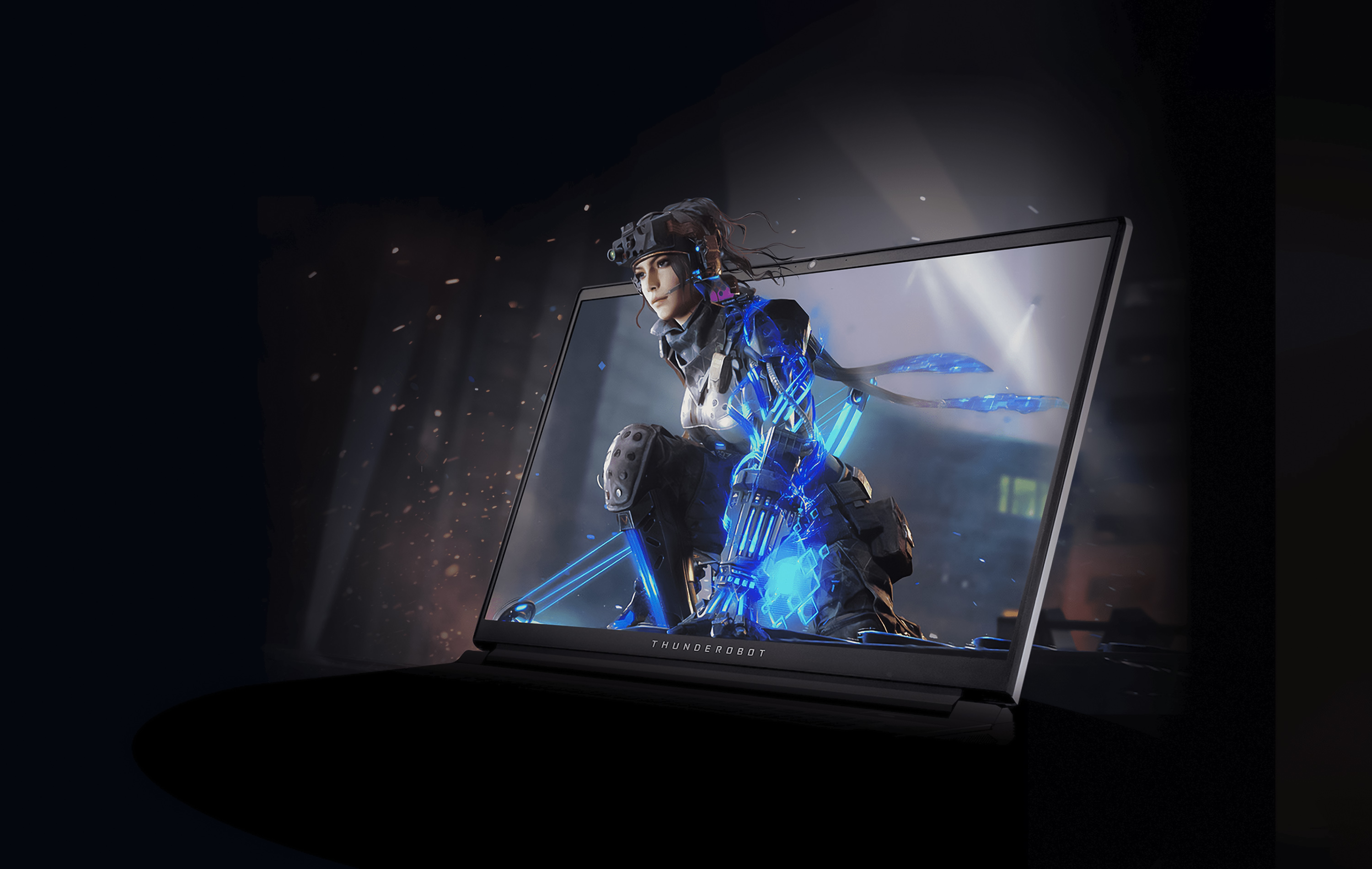 На крышке выделяется рельефный логотип серии игровых ноутбуков Thunderobot.