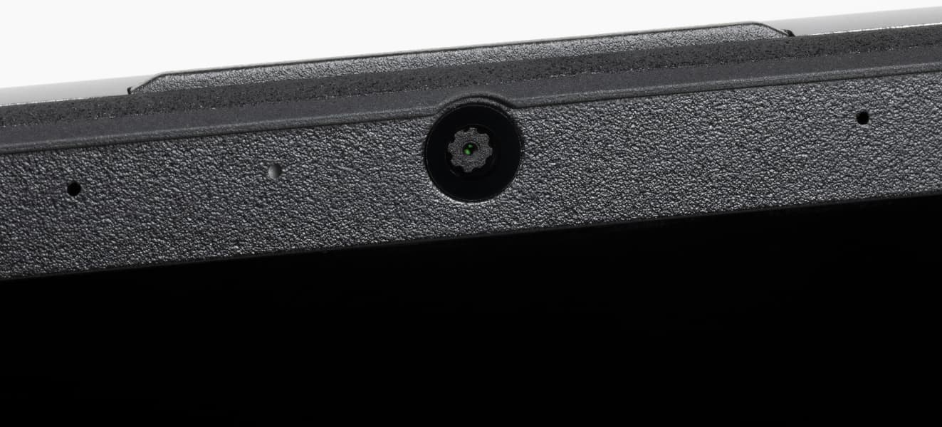 В верхнюю часть рамки встроена миниатюрная веб-камера с разрешением видео 1280×720 пикселей при 30 кадрах/с. С двух сторон от нее видны отверстия микрофонов, а слева — светодиодный индикатор активности устройства. Качество видео традиционно невысокое.