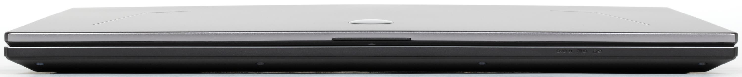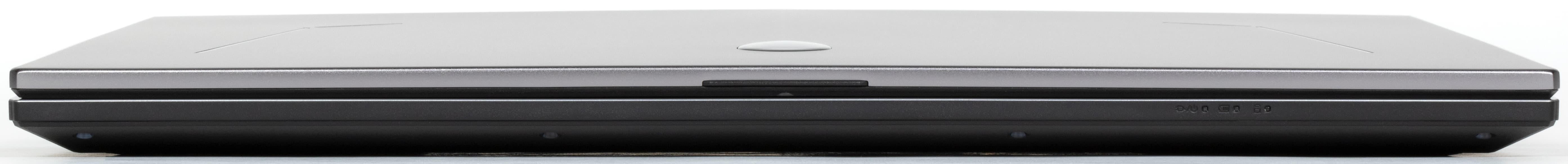 Спереди на крышке заметна специальная выемка, облегчающая захват кромки пальцами при раскрытии ноутбука, а также блок сигнальных индикаторов.