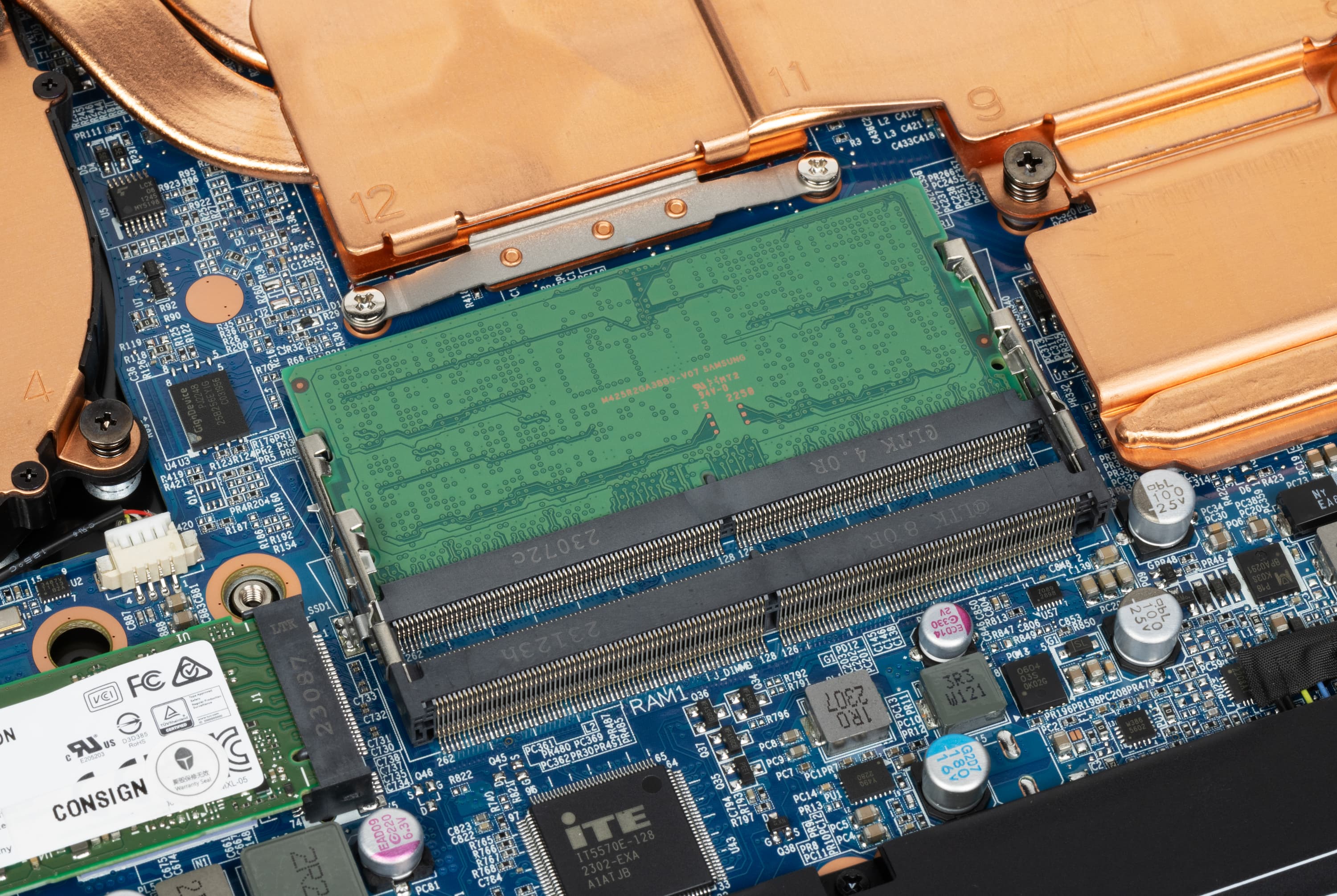 Слотов для установки модулей SO-DIMM два, они расположены в два этажа, но заполнен лишь один из них.
