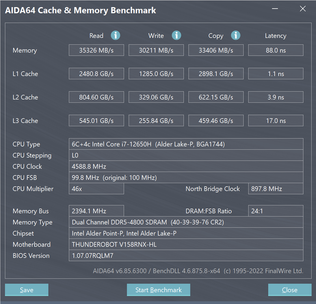| Тест | Референсный результат (Intel Core i5-9600K) | Thunderobot 911 Plus G2 Max (Intel Core i7-12650H) | Thunderobot 911 M G3 Pro (Intel Core i5-13500H) | Thunderobot Zero 2022 (Intel Core i7-12700H) |