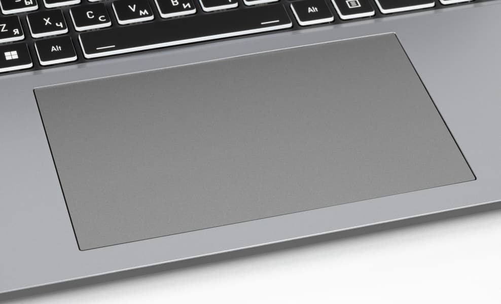 Навигационная панель значительно больше по размерам, чем традиционная у ноутбуков с 15,6-дюймовыми экранами. Она не имеет выделенных кнопок, но нажатия сопровождаются отчетливыми щелчками и соответствующими откликами. Кликпад заметно смещен влево от условного центра. Уверенно отрабатываются нажатия в ближайших к пользователю ⅔ площади, а жесты поддерживаются все и по всей поверхности.