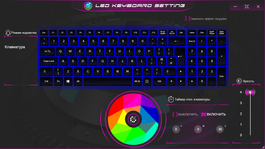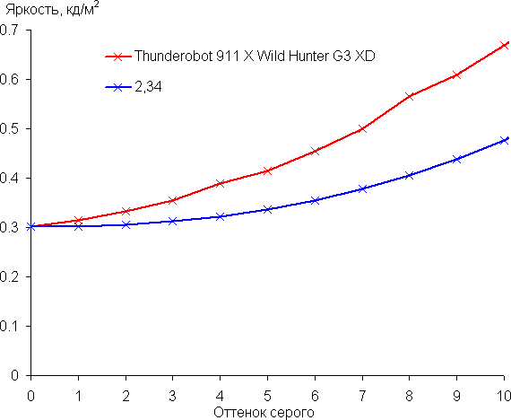 Подсветка клавиатуры реализована у соперников по-разному: в Thunderobot 911 X Wild Hunter G3 XD она только белого цвета, и никакой другой использовать не получится. Доступны два уровня яркости (третье состояние — подсветка выключена). Переключение производится последовательными нажатиями Fn+пробел. Управление подсветкой в фирменном приложении недоступно.