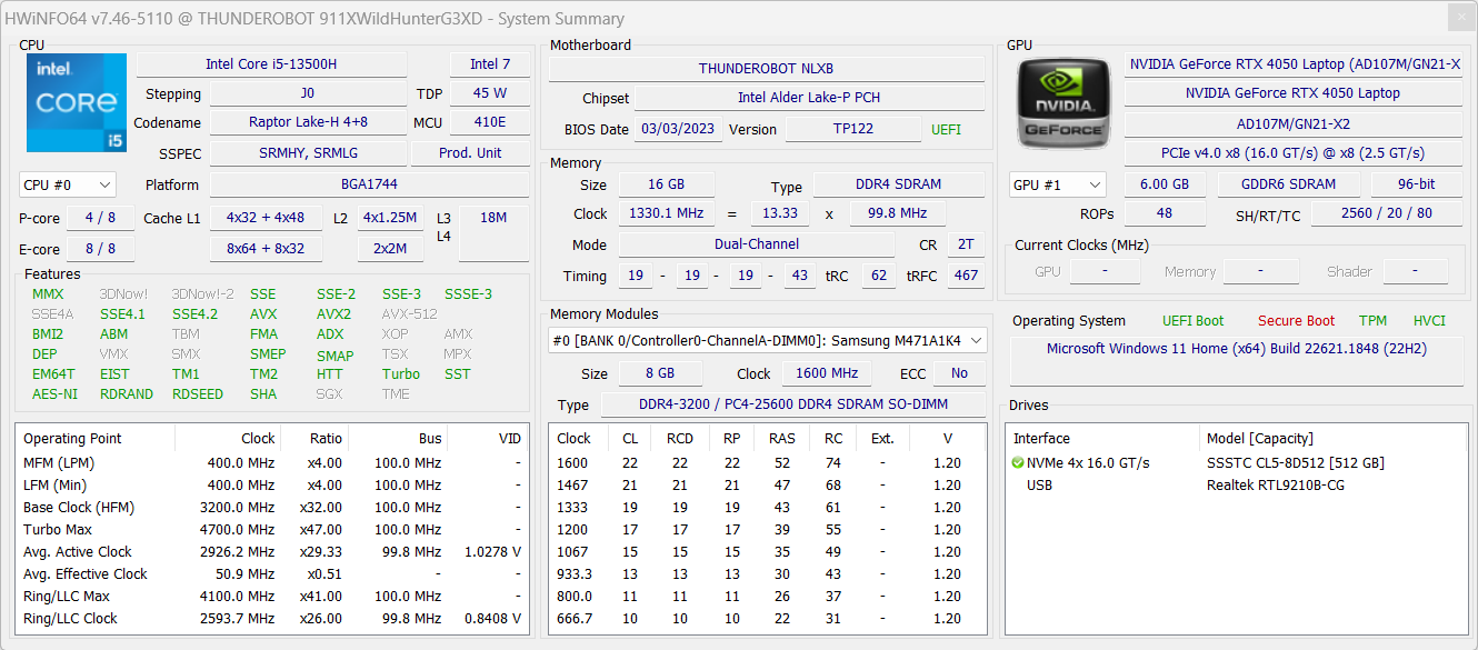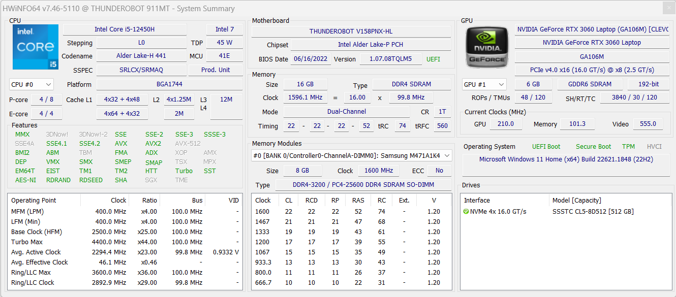 - Thunderobot 911 MT Pro D построен на платформе прошлогодней актуальности: Intel Core i5 двенадцатого поколения и дискретная графика на ступень выше начального уровня — Nvidia GeForce RTX 3060 Laptop.