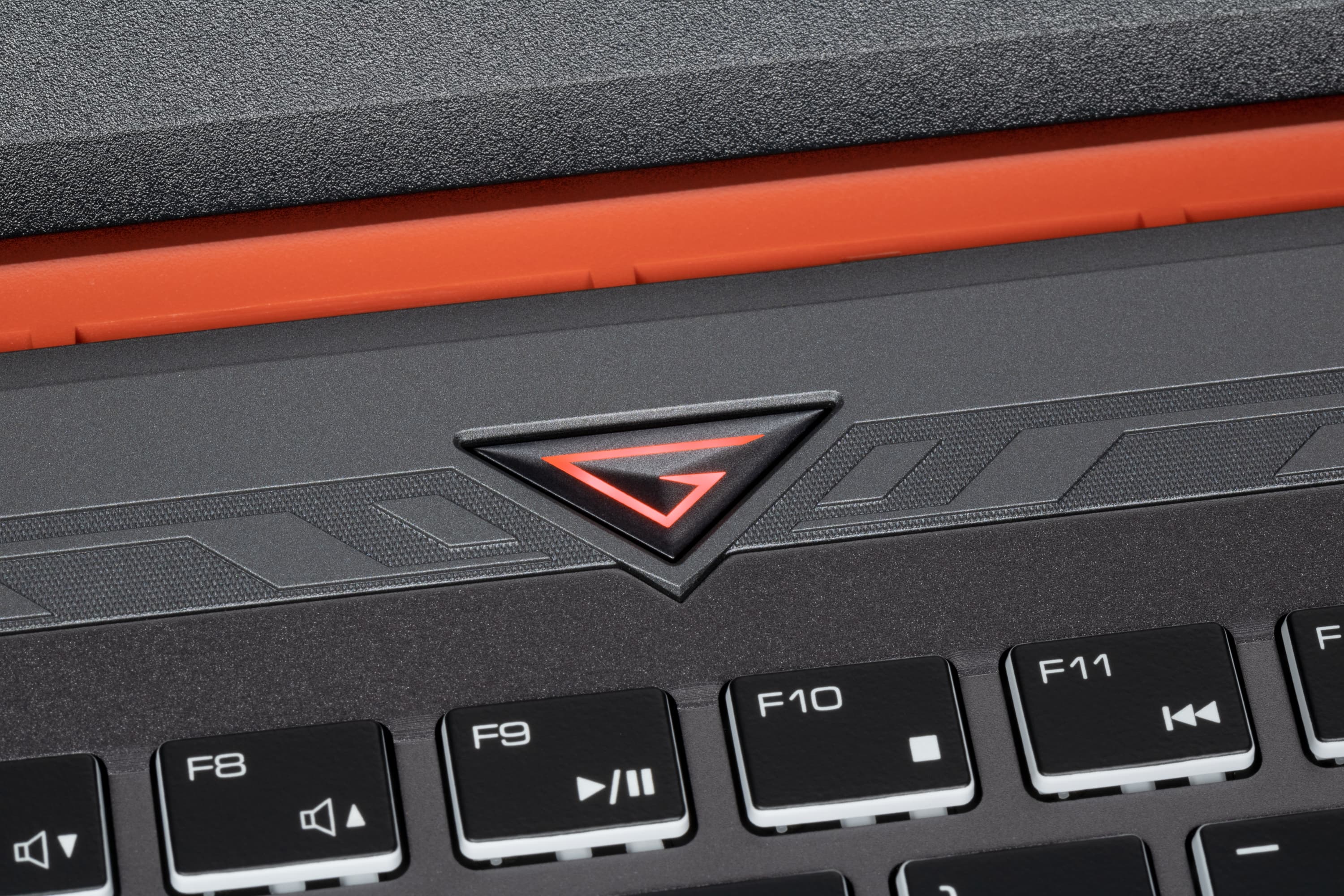 Создатели Thunderobot 911 X Wild Hunter G3 XD разместили такую кнопку над верхним рядом клавиатуры строго по центру лицевой панели. Ей придана форма треугольника, обращенного вершиной вниз, в промежуток между клавишами F9 и F10. Подобное указание, судя по всему, не содержит в себе никакого особого смысла — скорее всего, это вышло случайно. Профиль кнопки соответствует по форме сильно сплющенному тетраэдру, и хотя ребра последнего немного сглажены, нажатие на вершину (а куда еще прикладывать усилие?) не вызывает тактильного комфорта.