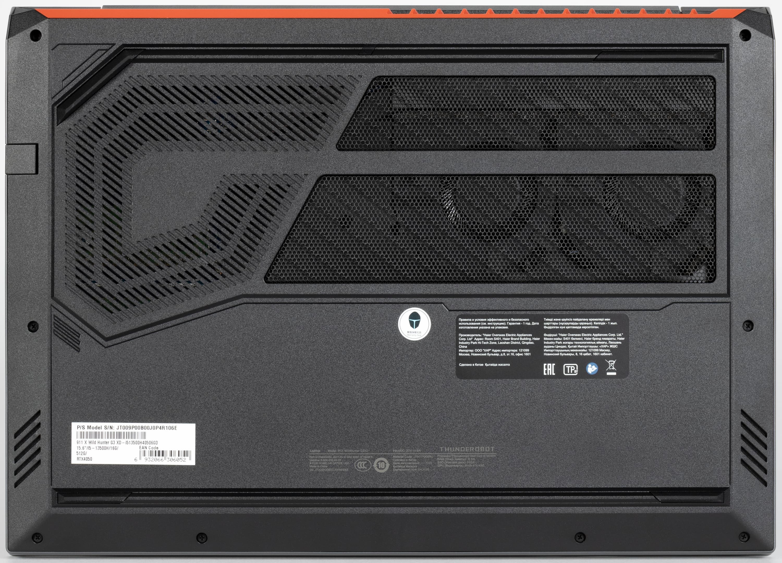 На задних панелях общего почти нет. Это касается даже выходных трактов СО. У Thunderobot 911 X Wild Hunter G3 XD, как мы увидим ниже, нагретый воздух эвакуируется только назад одним потоком, а у Thunderobot 911 MT Pro D — четырьмя (двумя назад, одним вправо и одним влево). Thunderobot 911 X Wild Hunter G3 XD демонстрирует нам сзади лишь решетку выходного тракта СО; разъемов здесь нет.