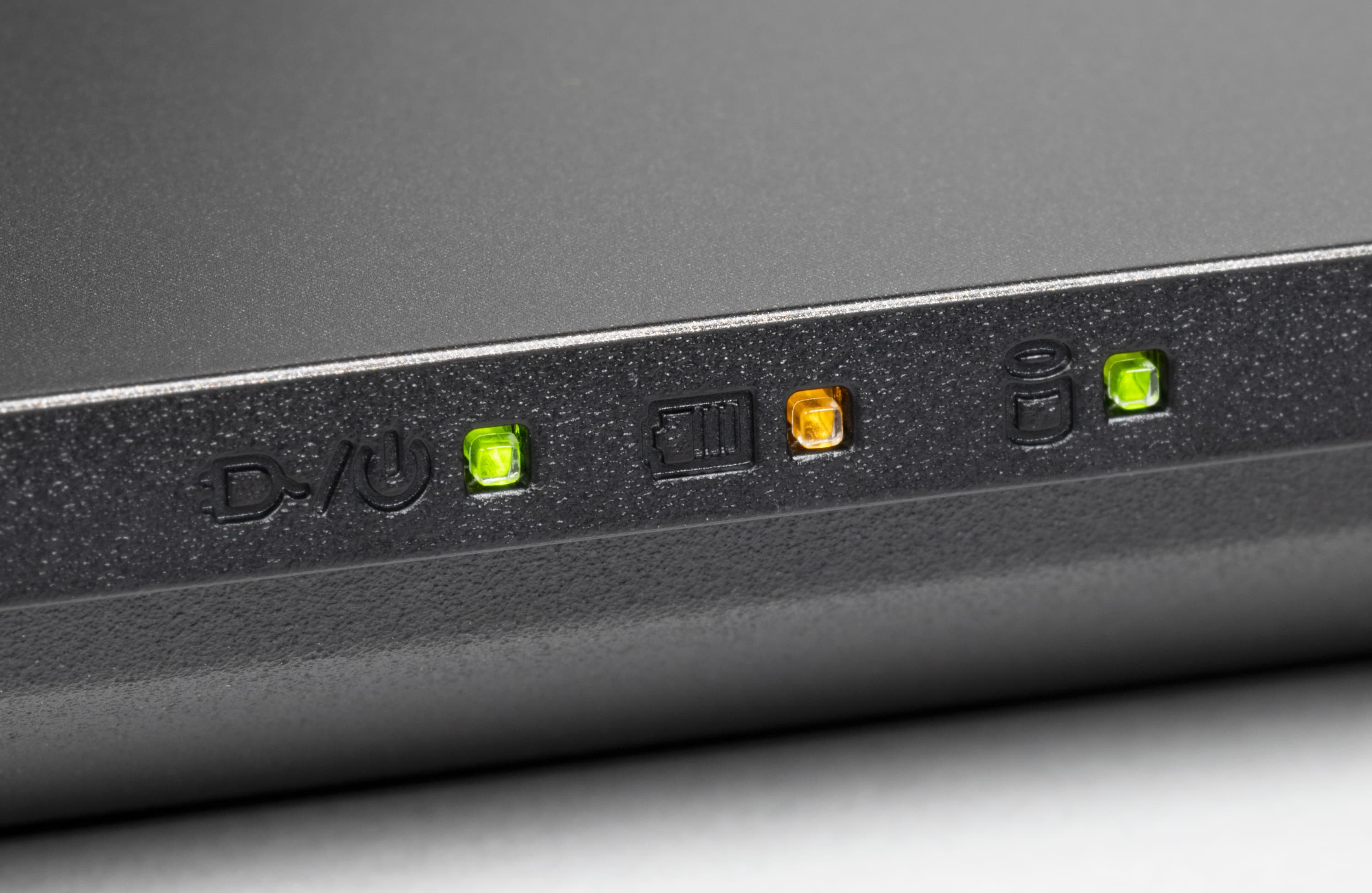 Слева направо в ряд помещаются индикаторы подключения адаптера питания, зарядки встроенного аккумулятора и активности системного накопителя.
