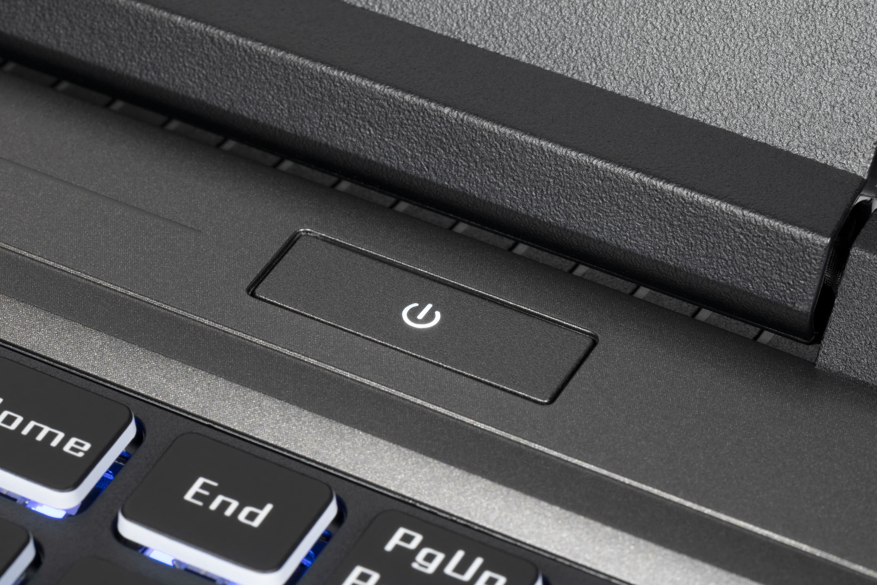 У Thunderobot 911 MT Pro D аналогичный выключатель также располагается под экраном, но смещен вправо. В отличие от конкурента эта кнопка совершенно плоская и установлена заподлицо с поверхностью клавиатурной панели, поэтому случайные нажатия исключены.