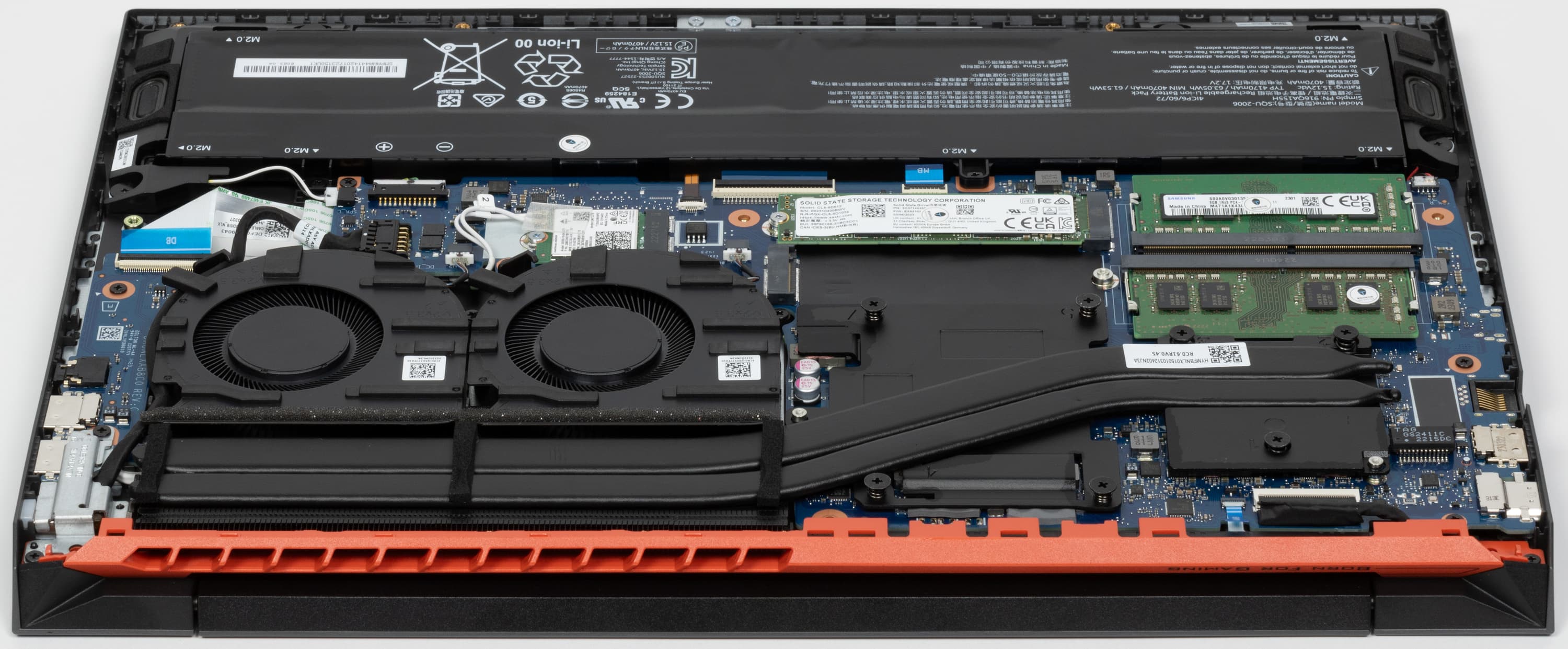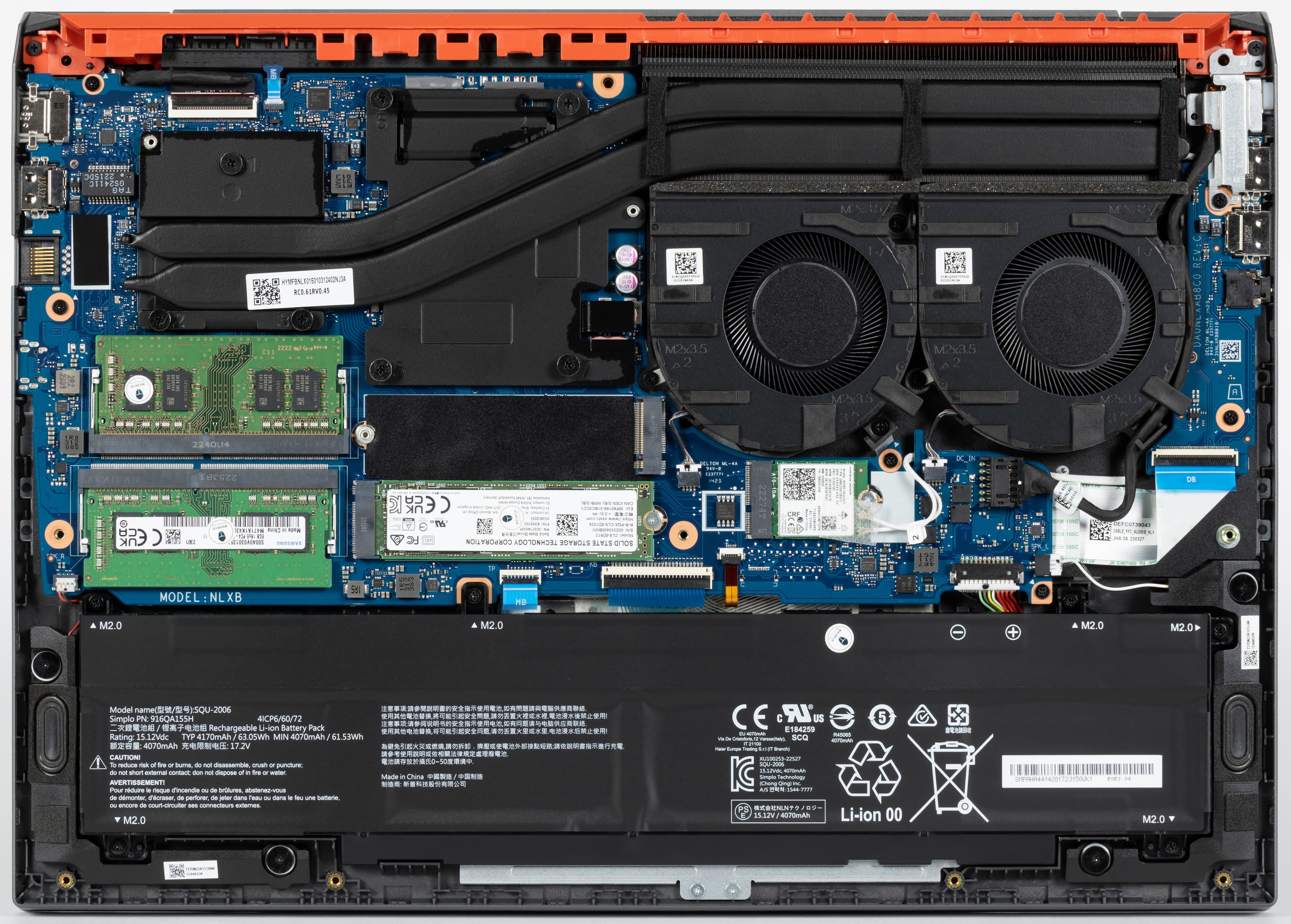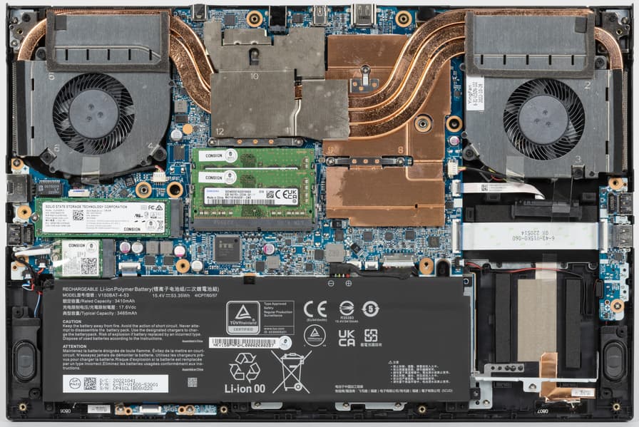 Качество сборки и монтажа компонентов у Thunderobot 911 X Wild Hunter G3 XD высокое, у Thunderobot 911 MT Pro D — посредственное. Оперативная память, твердотельные накопители, контроллеры Ethernet, веб-камеры и блоки питания у ноутбуков одинаковые, а адаптеры Wi-Fi разные: у первого, на более новой платформе, — старый Intel AC9462 (Wi-Fi 5, 802.11ac), а y второго, на прошлогоднем «железе», он новее и лучше — Intel AX201 (Wi-Fi 6, 802.11ax); в ходе испытаний скоростей беспроводной связи первый сокрушительно проигрывает второму. Быстродействие комплектных NVMe-накопителей плачевное: скорости последовательной записи у Thunderobot 911 MT Pro D соответствуют лишь возможностям SATA SSD, а у Thunderobot 911 X Wild Hunter G3 XD — лишь жесткому диску. Аппаратная модернизация у первого ноутбука возможна за счет установки SATA SSD или винчестера в отсек для 2,5-дюймового устройства, а у второго для этого предназначен пустующий слот M.2