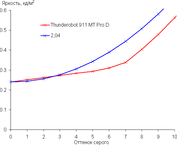 У Thunderobot 911 MT Pro D предусмотрено четыре уровня яркости (пятое состояние — подсветка выключена). Управление производится аккордом Fn и клавиш цифрового блока: включение — Fn+«*», выключение — Fn+«/», уменьшение яркости — Fn+«−», увеличение яркости — Fn+«+». Динамических схем подсветки нет, одновременно отображается лишь один цвет (выбор доступен в форменном приложении Control Center).