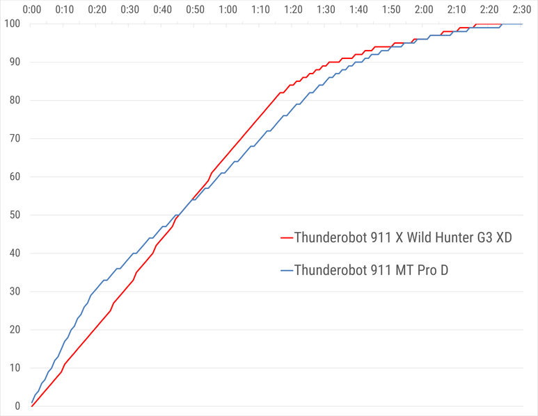В каждой из отдельно взятых номинаций Thunderobot 911 X Wild Hunter G3 XD опережает своего спарринг-партнера, причем, существенно (в среднем на 20%). Однако многое может измениться при учете быстродействия системного хранилища.