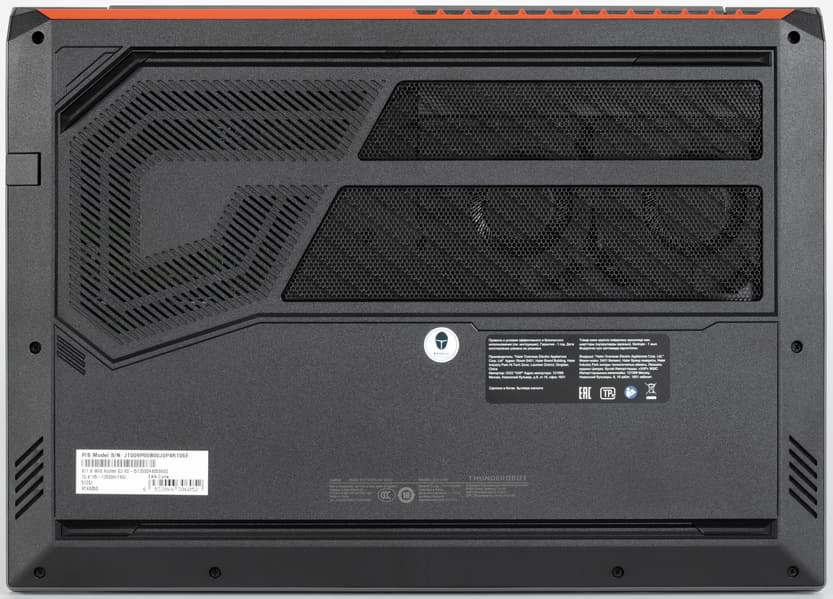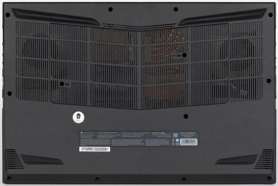 Еще одна схожесть конструкции обеих нижних крышек — решетки, которыми накрыты расположенные внутри динамики. Все остальное сильно различается, включая резиновые опоры. У Thunderobot 911 X Wild Hunter G3 XD они представляют собой две линейки, в то время как у Thunderobot 911 MT Pro D — четыре отдельные детали (сзади шире, чем спереди). Входные отверстия воздухозаборников системы охлаждения (СО) располагаются над обоими кулерами. Жесткость конструкции днища в первом случае явно более внушительная, чем во втором.