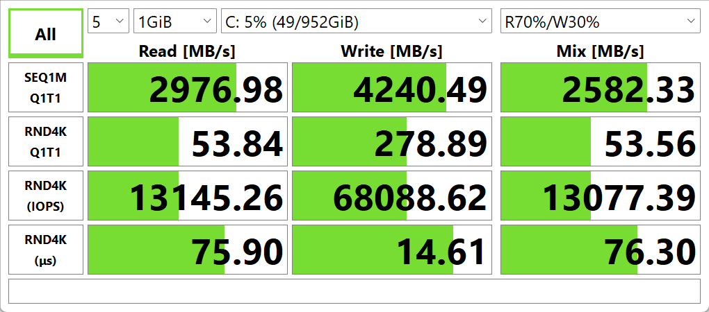 Как следовало ожидать, установка Control Center и выбор профиля High Performance не повысят производительность: разница между вторым и правым столбцами таблицы — на уровне случайных отклонений. Два других профиля могут лишь снизить ее (Gaming — немного, Office mode — весьма существенно), но при этом уменьшат шум, нагрев и потребление энергии.