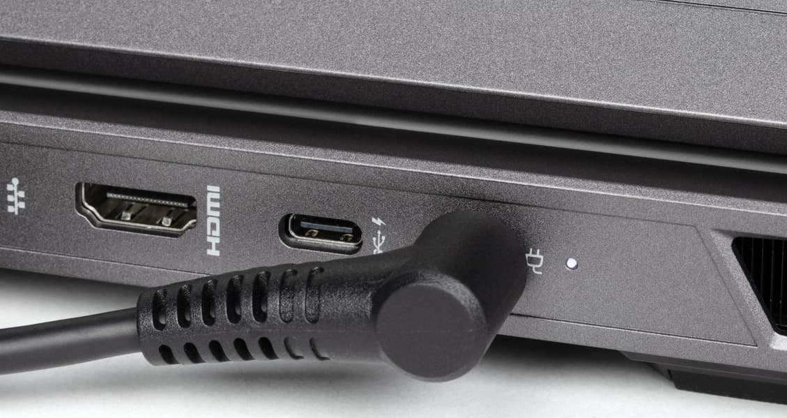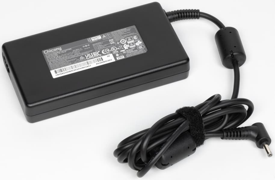 Емкость батареи совсем уж скромной не назовешь, однако время автономной работы очень небольшое даже по меркам игровых ноутбуков, а восполняется заряд не слишком быстро. Зато есть возможность питания от любого адаптера с поддержкой Power Delivery и мощностью не менее 100 ватт (правда, при этом будет ограничена производительность в «тяжелых» приложениях, включая игры), что позволит не носить с собой массивный штатный БП. Причем в крайнем случае можно использовать и 65-ваттный источник.