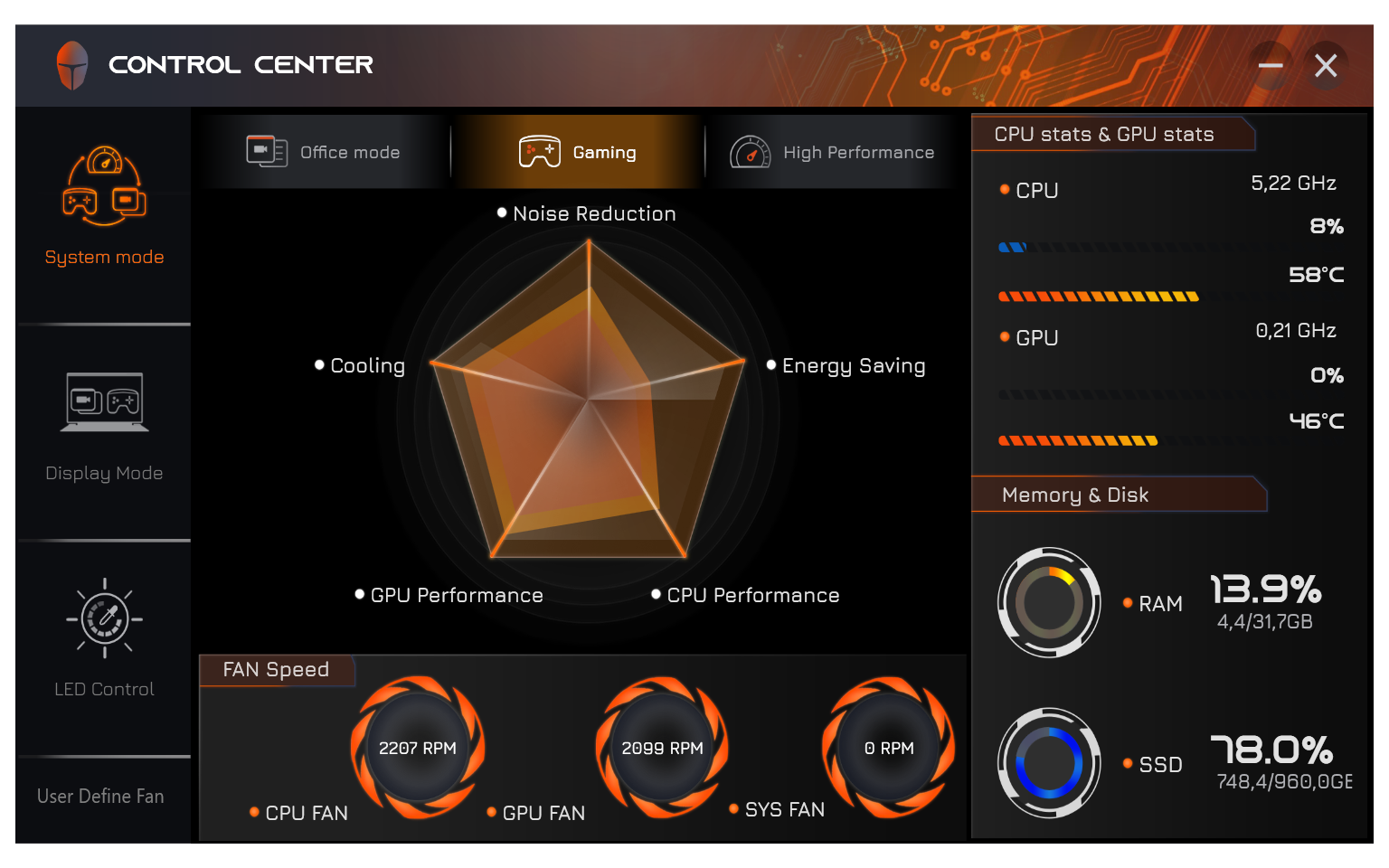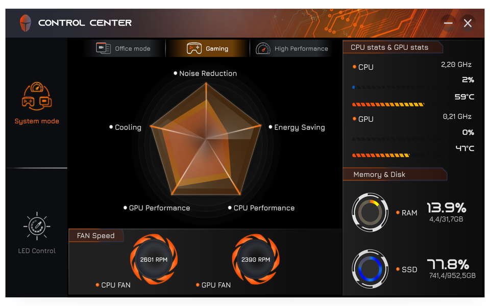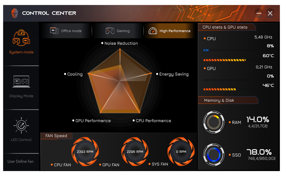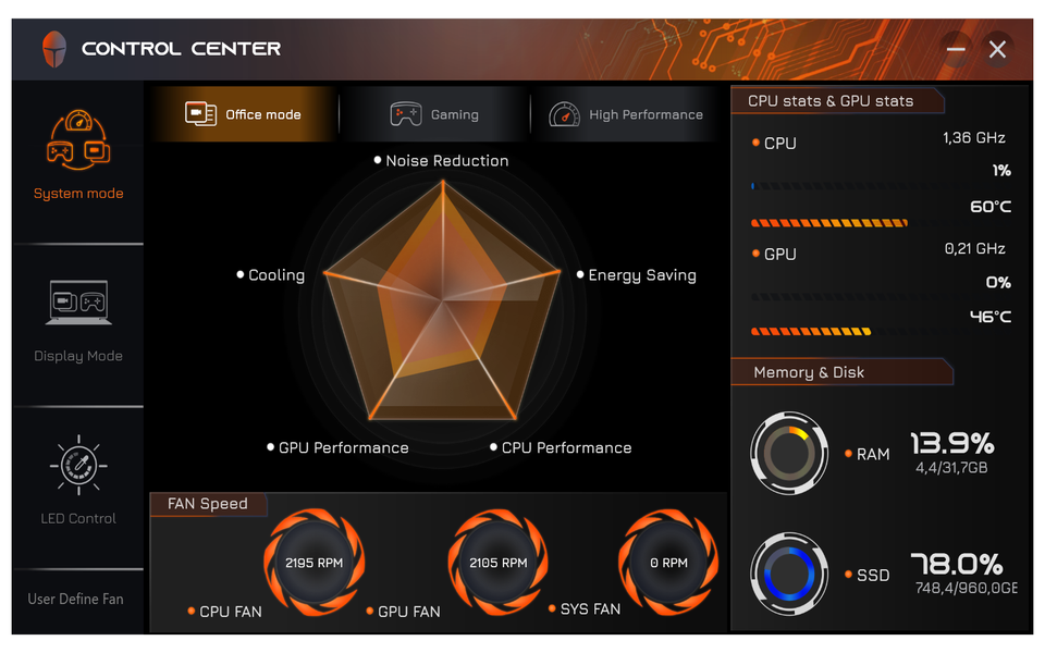 | Office mode | Gaming | High Performance | ||