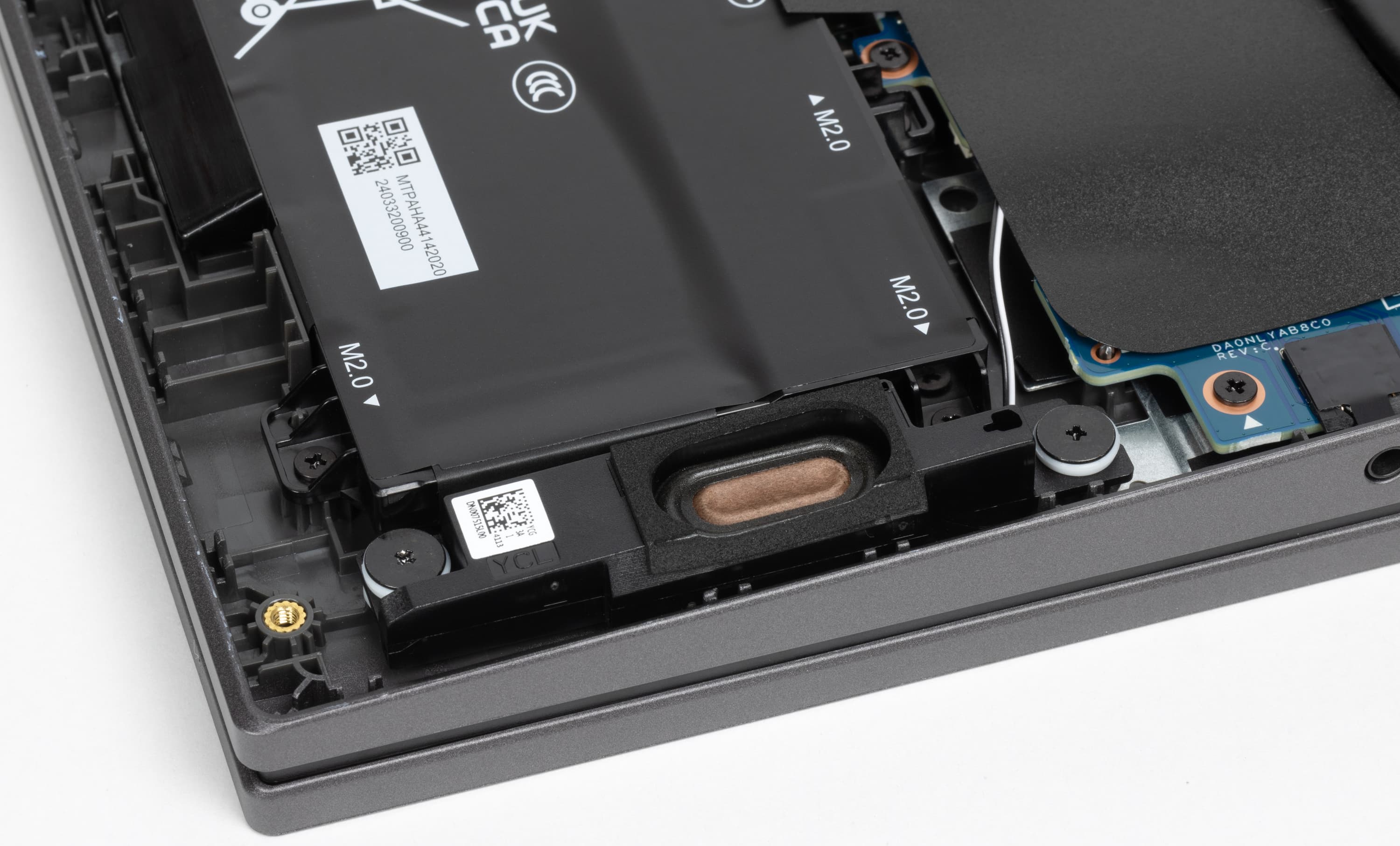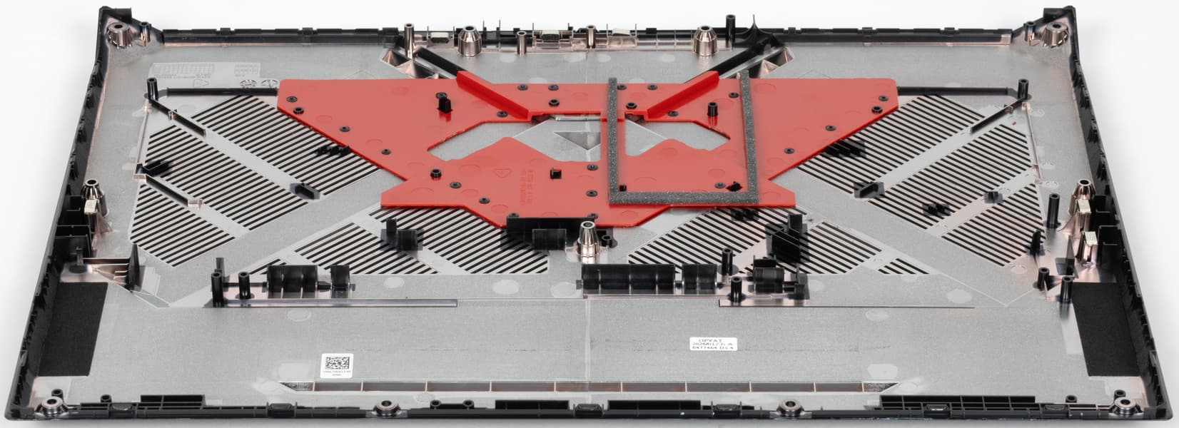 Чтобы снять нижнюю крышку, надо удалить 11 винтов, один из которых заклеен стикером. Ранее в компании нас заверяли, что при необходимости (например, чтобы добавить второй SSD) ее можно снять без негативных последствий в плане гарантии.