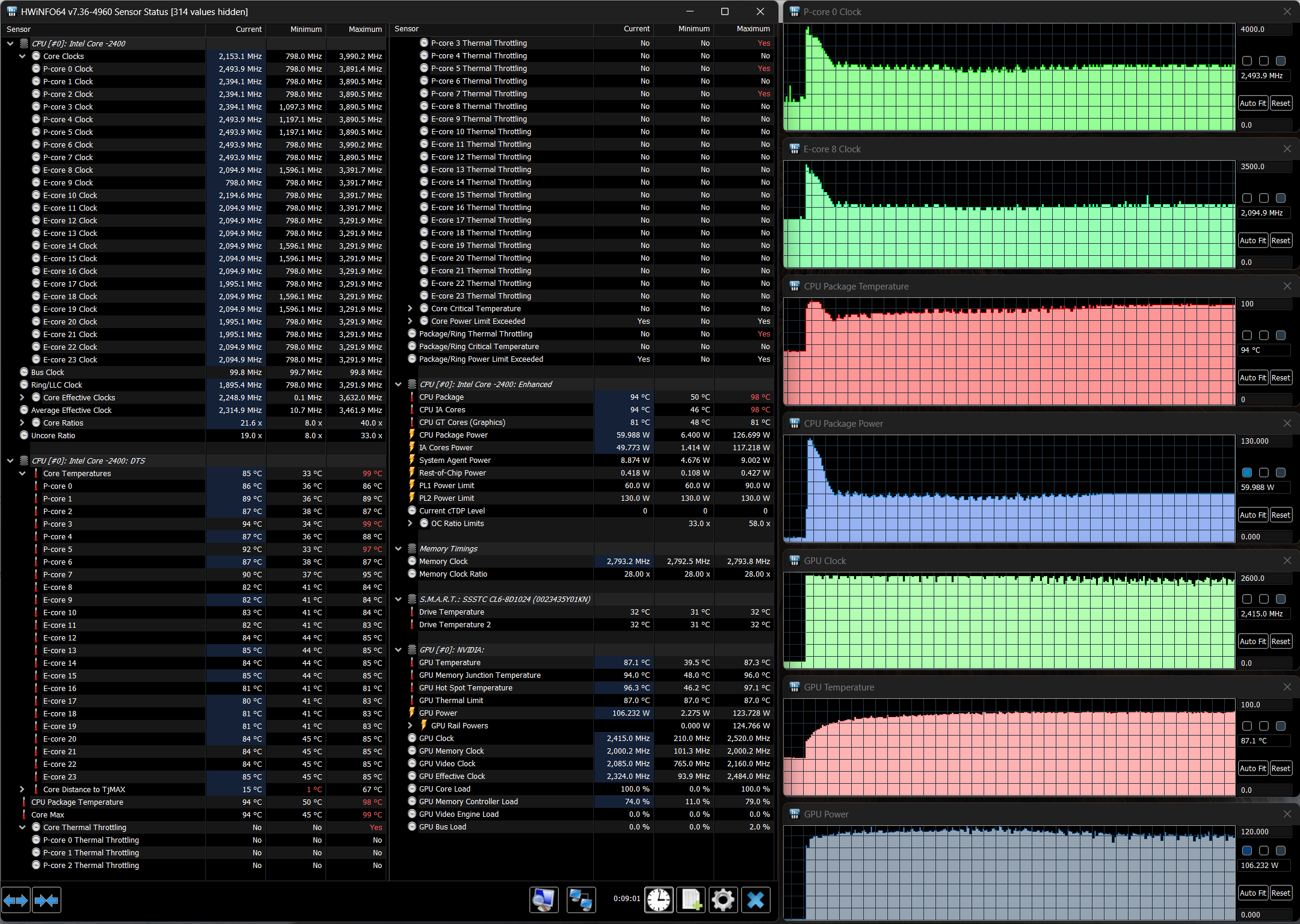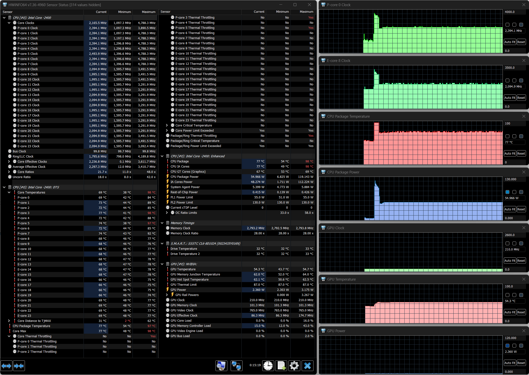 - Maibenben X639 c Intel Core i9-13900HX (8+16 ядер/32 потока, до 5,4 ГГц, TDP 55—157 Вт), Nvidia GeForce RTX 4080 Laptop c 12 ГБ GDDR6, 32 ГБ DDR5-4800, 1 ТБ SSD Kingston PCIe 4.0 x4 (результаты без использования внешней СЖО).