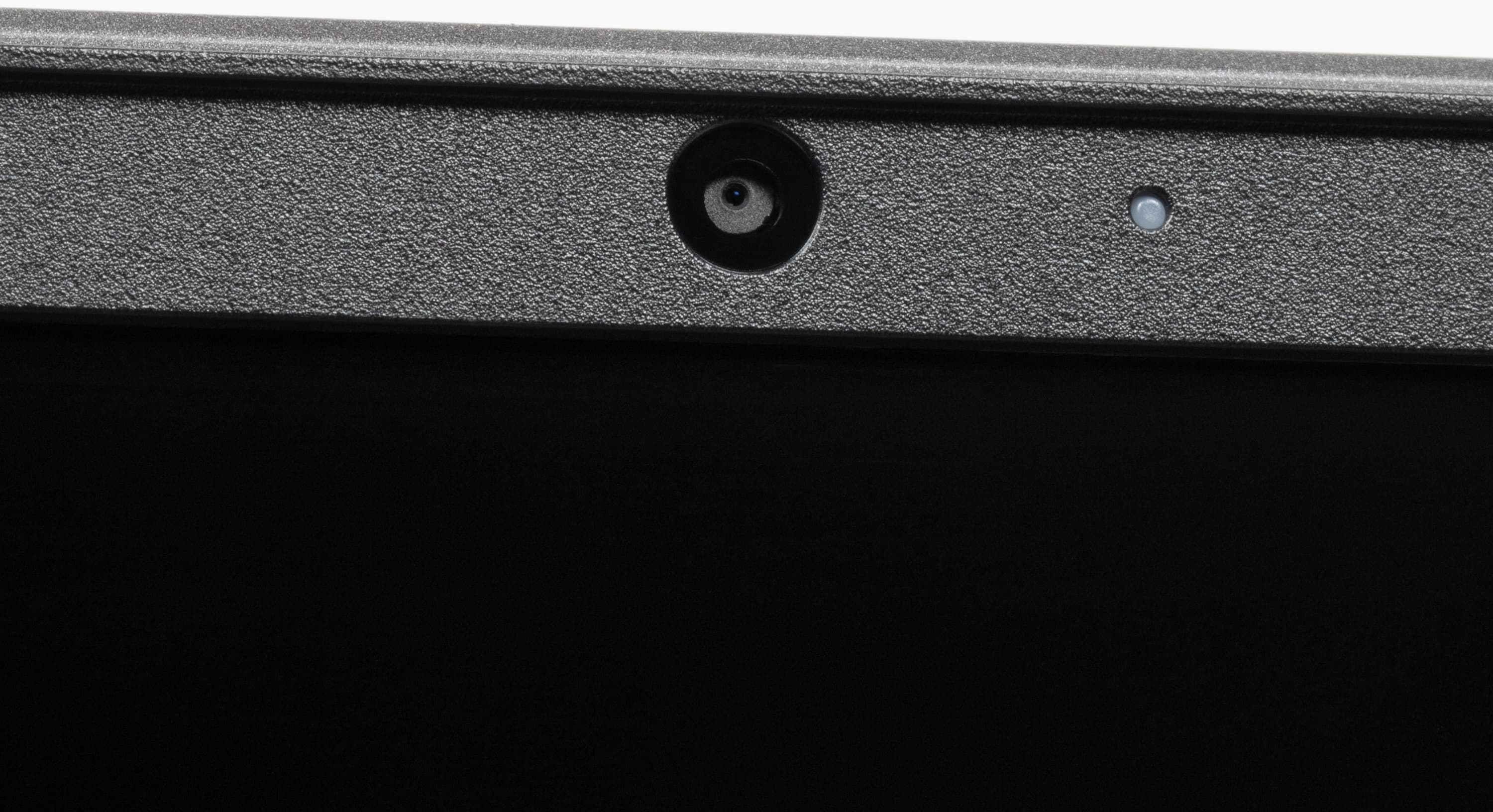 Черная пластиковая рамка вокруг экрана не слишком широкая: по бокам 5,6 мм, вверху 9,5 мм (там расположена веб-камера с индикатором, но без шторки, и микрофоны), внизу 18,5 мм до петли.