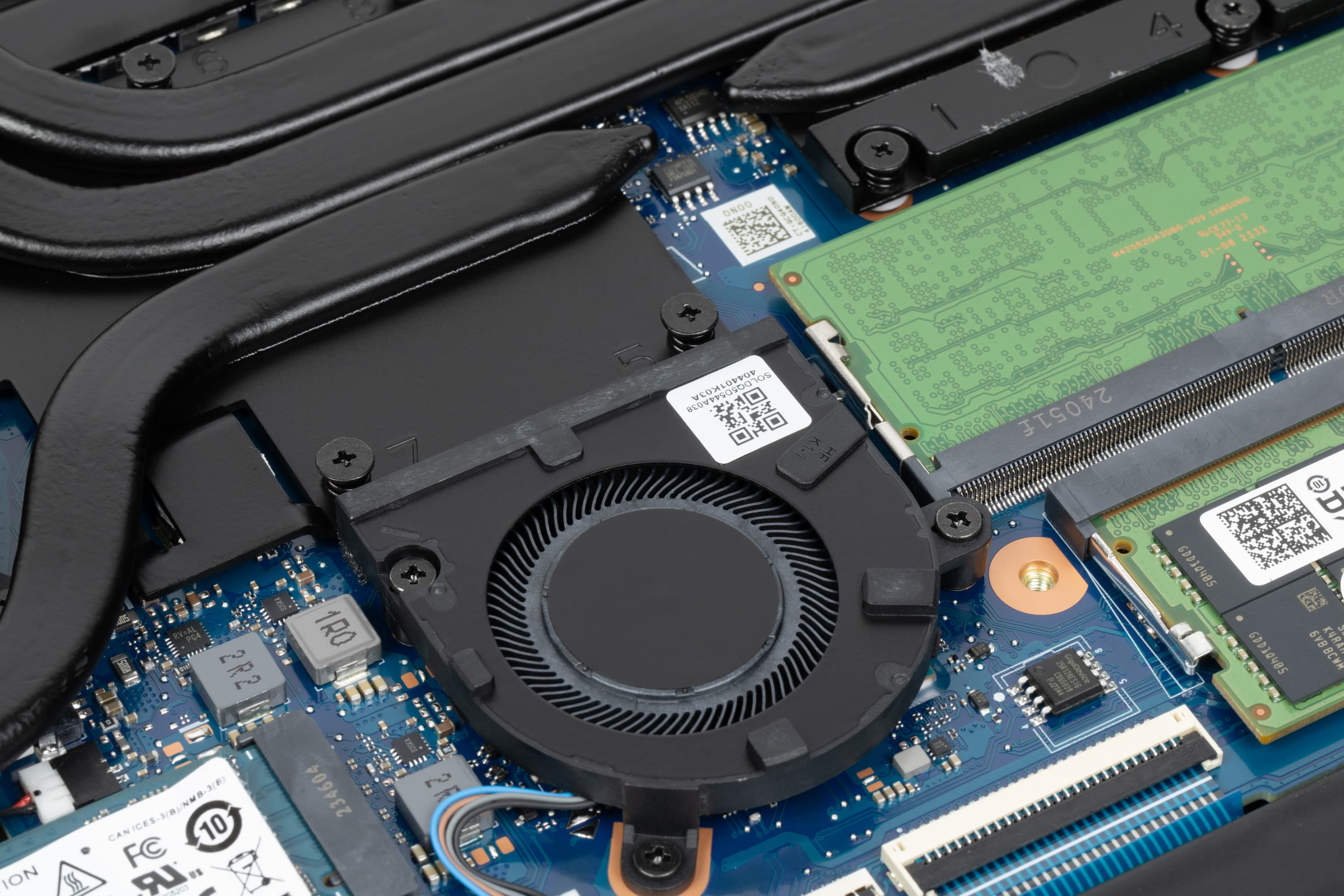 Плата закрыта гибкой пластиной, если ее снять, то станут хорошо заметны (и легко доступны) слоты под модули SO-DIMM, накопитель в слоте М.2 и свободный слот для второго подобного SSD.