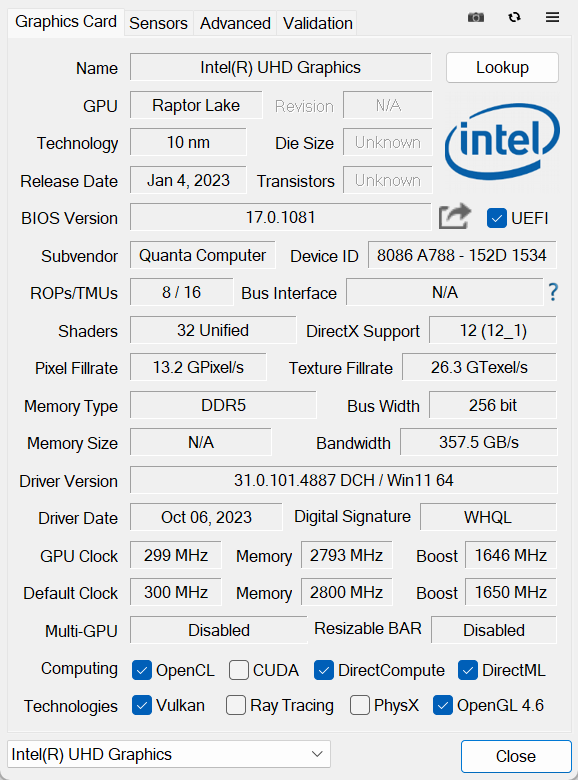 Имеется и интегрированный видеоадаптер Intel UHD Graphics — понятно, в играх его использовать нет смысла.