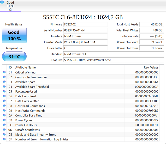 | Накопитель | SSD 1 ТБ SSSTC CL6-8D1024, M.2 2280, NVMe, PCIe 4.0 x4 есть свободный слот под второй SSD М.2 2280 | |