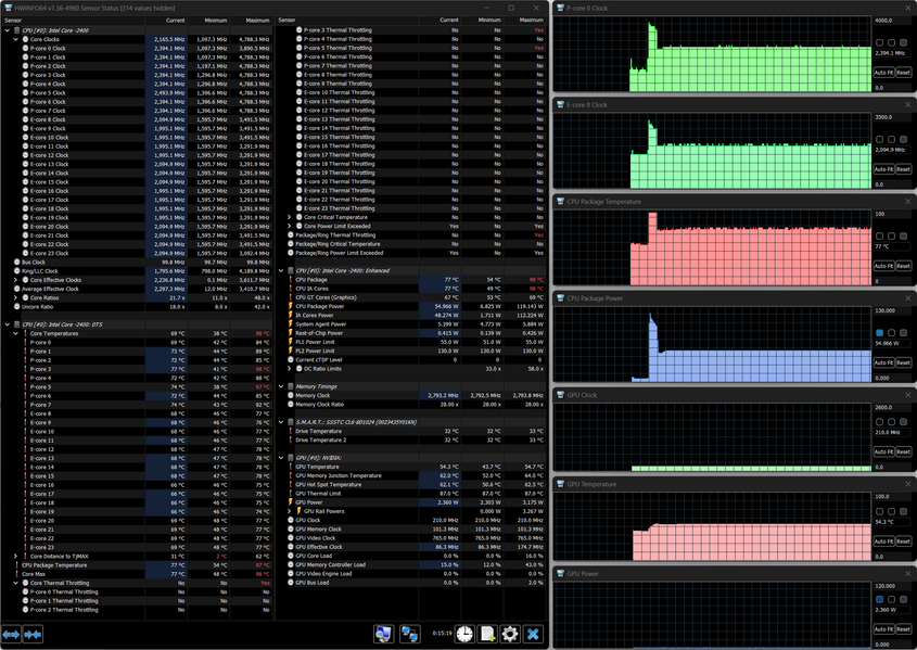 - и Maibenben X639 c Intel Core i9-13900HX (8+16 ядер/32 потока, до 5,4 ГГц, TDP 55—157 Вт), 32 ГБ DDR5-4800, Nvidia GeForce RTX 4080 Laptop c 12 ГБ GDDR6 (результаты без использования внешней СЖО)