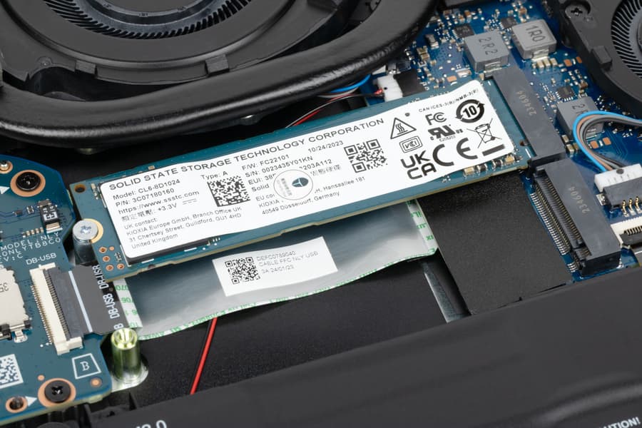 У него вполне приличный для подобных устройств набор потребительских качеств: IPS-экран 16″ с разрешением 2560×1600 и частотой обновления 240 Гц, свежий и весьма производительный процессор Intel Core i9-14900HX, дискретный видеоадаптер Nvidia GeForce RTX 4070 Laptop (средний в соответствующей линейке), 32 ГБ DDR5-5600 в двух слотах SO-DIMM, весьма неплохой накопитель NVMe SSD PCIe 4.0 x4 на 1 ТБ с возможностью установки второго подобного, видеовыход HDMI, четыре порта USB, из которых один Type-C (с поддержкой Power Delivery и вывода видео, но без Thunderbolt). Дополняют картину интерфейсы Wi-Fi 6, Bluetooth 5.2 и Gigabit Ethernet, клавиатура с RGB-подсветкой, полноценным цифровым блоком и обособленными клавишами-стрелками не просто нормального, но даже чуть увеличенного размера.