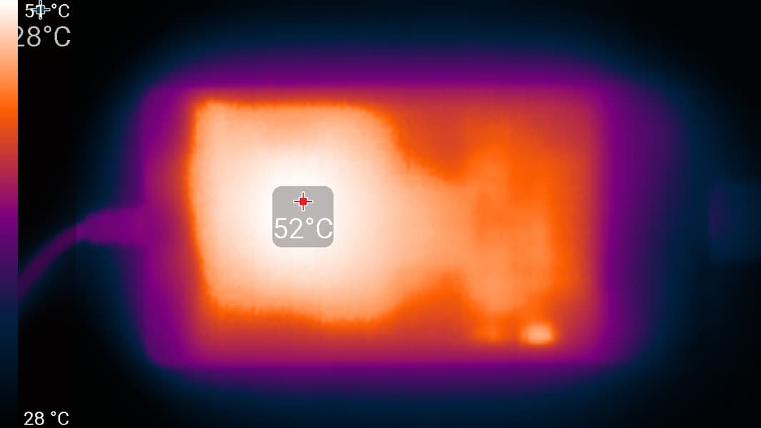 Слева помещаются коаксиальный разъем адаптера питания, светодиодный индикатор работы от сети, порт USB Type A, стандартный видеовыход HDMI, два порта USB Type-С и комбинированный аудиоджек для подключения гарнитуры. Оба Type-C поддерживают вывод видео по DisplayPort и питание внешних устройств (PowerDelivery). Для зарядки машины можно использовать любой из этих двух разъемов.