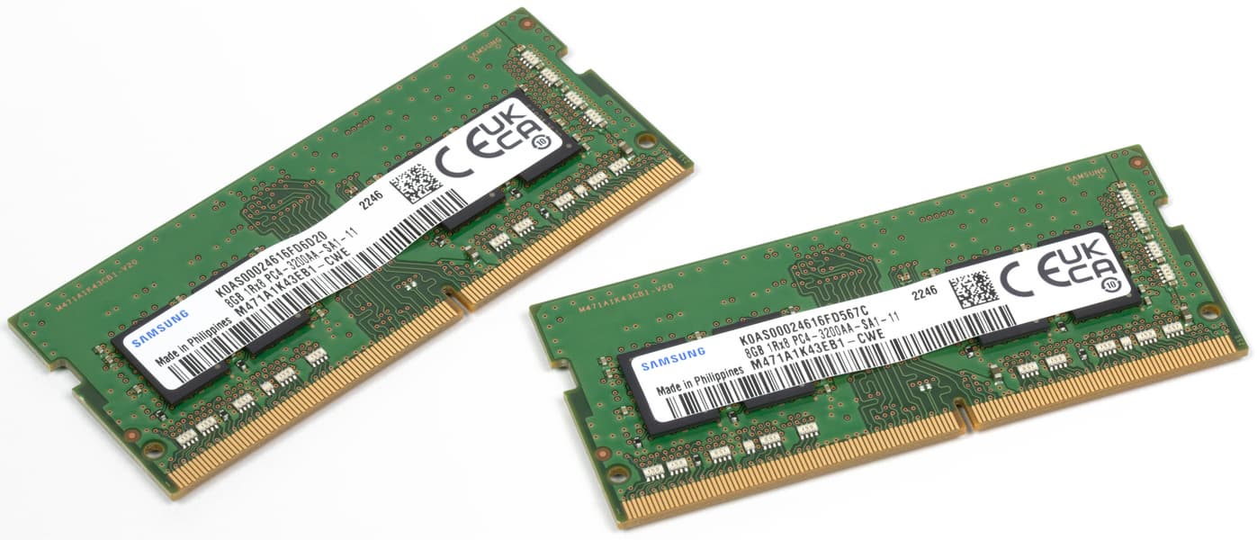 Машина располагает 16 ГБ оперативной памяти DDR4-3200 в виде двух 8-гигабайтных моделей SO-DIMM Samsung M471A1K43EB1-CWE. ОЗУ работает в двухканальном режиме.