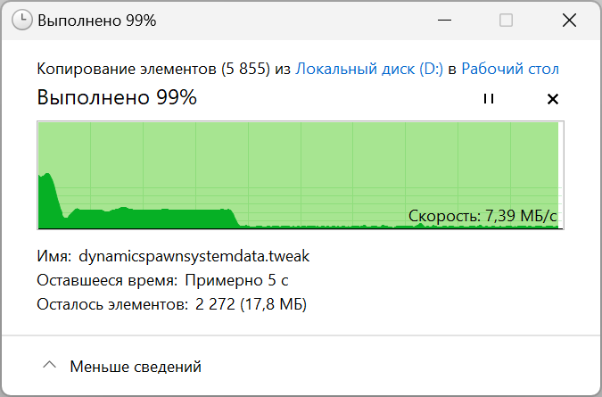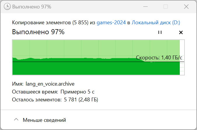 | Скорость копирования данных, c | 43 | 73 | 11 | 16 |