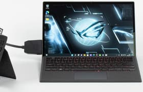 Asus ROG Flow Z13 — компактный ноутбук или большой планшет с клавиатурой. На нем установлена Windows 11, так что очень мощный процессор позволяет использовать это устройство для любых профессиональных задач, а дискретная видеокарта обеспечивает возможность поиграть почти в любые требовательные игры в Full HD при высоком качестве графики. Если этого покажется мало, то к планшету можно прикупить еще и графическую док-станцию с внешней видеокартой вплоть до Nvidia GeForce RTX 3080 Laptop и с набором интерфейсных портов.