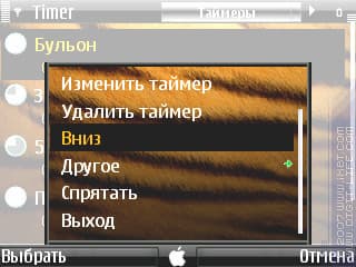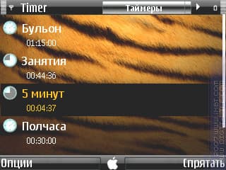 По сравнению с таймерами из уже упомянутой «Handy Clock», есть минус: не отображается установка, а отображается лишь оставшееся значение. Поэтому рекомендуется указывать установку в имени таймера. Также нельзя задать направление (прямой/обратный). Каждому таймеру можно задать свою мелодию и громкость, но выбор мелодий идет только из папки «Z:SystemSounds» — то есть, из ROM, а значит, своих мелодий не установить. Для чего такая глупость сделана? Непонятно... Вибру программа использовать не умеет.