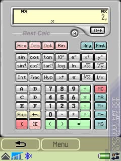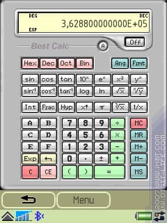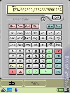 В принципе, и встроенные калькуляторы теперь зачастую очень неплохи. Но имеют, в большинстве своем, два почти стандартных ограничения: не умеют считать специальные функции и обладают слишком маленькой разрядностью. Понятно, чтобы доллары в рубли перевести и этого хватит. Но если нужен более или менее нормальный помощник в рассчетах, требуется уже "инженерный" вариант калькулятора. Одним из таких является программа-калькулятор от Smartphoneware - «Best Calc». Помимо своего расширенного набора функций, эта программа имеет и парочку дополнительных (и весьма редких) особенностей.