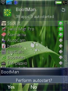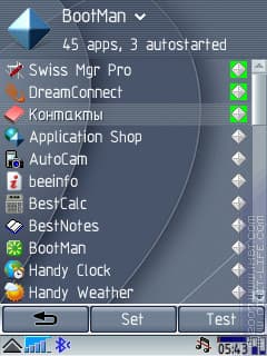 Чего греха таить, с оперативной памятью в смартах на UIQ 3.0 проблемы имеются - как с количеством, так и с умением смартфона ею распоряжаться: достаточно вспомнить эту убогую «перезагрузку для улучшения производительности». Чтобы избежать критических ситуаций при запуске смарта, связанной с переполнением памяти запускаемыми приложениями, в программе «BootMan» имеется режим «Test». Работает так: выбираете приложения для автозагрузки, и «тестируете» — программа попробует все это запустить, и укажет вам, сколько памяти останется после их запуска.
