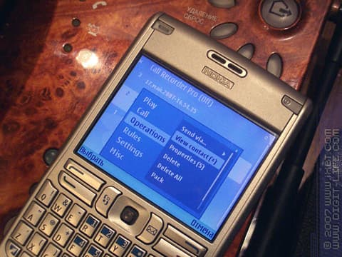 Имеется функция просмотра информации о звонке («Опции», вызываются по кнопке «5»), туда, помимо даты, времени, номера и длительности, входит путь к файлу записи и статус (прочитано/нет). Для списка работают функции отправки (Bluetooth/IrDA/MMS/E-Mail), удаления и запаковки (удаляются те записи, для которых не найден соответствующий файл).