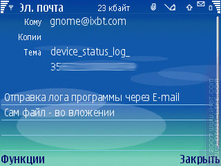 В принципе, можно и самому этот файл со смартфона перекинуть на ПК — по Bluetooth или через E-mail, или еще как-то. А в программе встроена функция «Send log», которая, правда, будет работать только в том случае, если хотя бы один почтовый ящик настроен внутри стандартного приложения для E-mail.