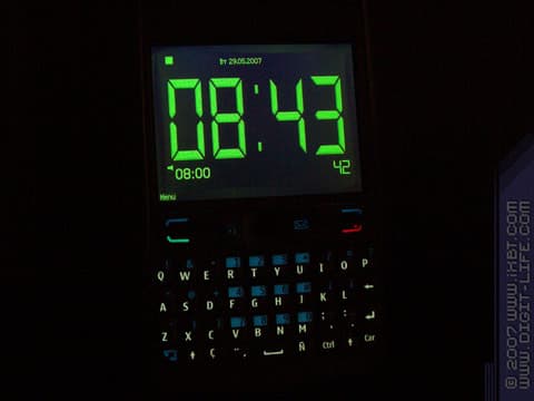 Прочие настройки сводятся к выбору ориентации (портрет или горизонт - на E61 разницы никакой), включению/выключению отображения секунд, включению/выключению поддерживания негаснущей подсветки, и формата отображения времени (12 или 24 часа).