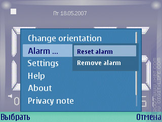 Программа простенькая, но вполне неплохо работающая. Во-первых, как уже было сказано, умеет назначать будильник. Именно свой будильник, который не сбрасывается после срабатывания. В стандартное приложение «Часы» эта установка не попадает. Неприятность одна: нажатие на красную трубку вырубает программу вместе со сработавшим будильником, а последующий запуск программы встретит вас сброшенным будильником и сообщением «Unable to validate alarm».