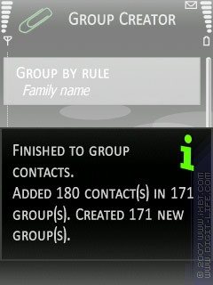 «Group Creator» — программа, позволяющая создавать в книге контактов группы по заданному параметру группировки. Очень простая, поэтому совершенно лишена какой-либо гибкости.